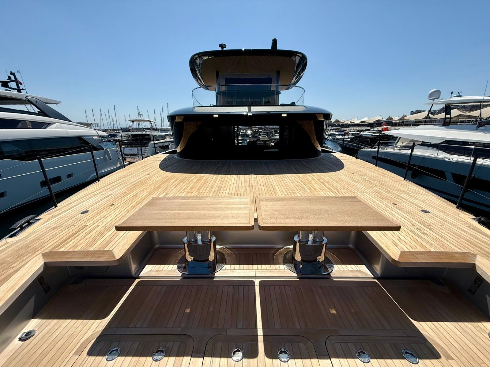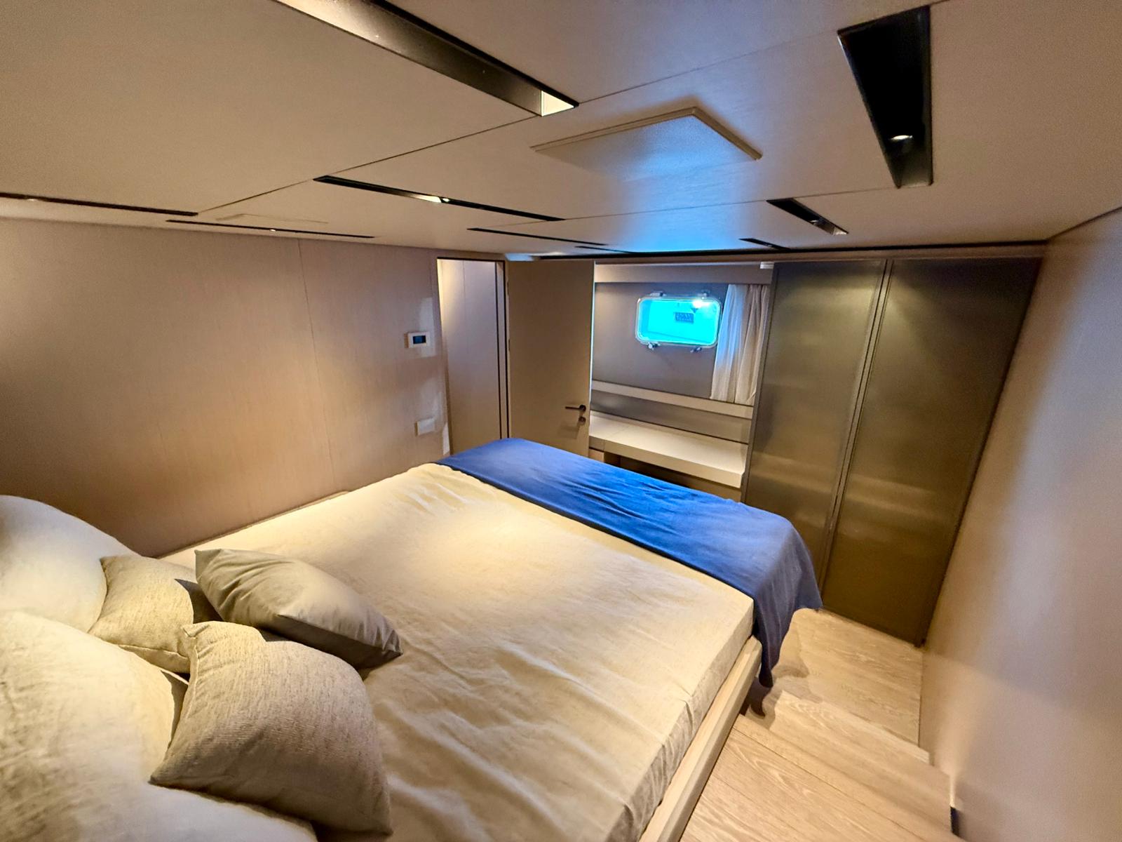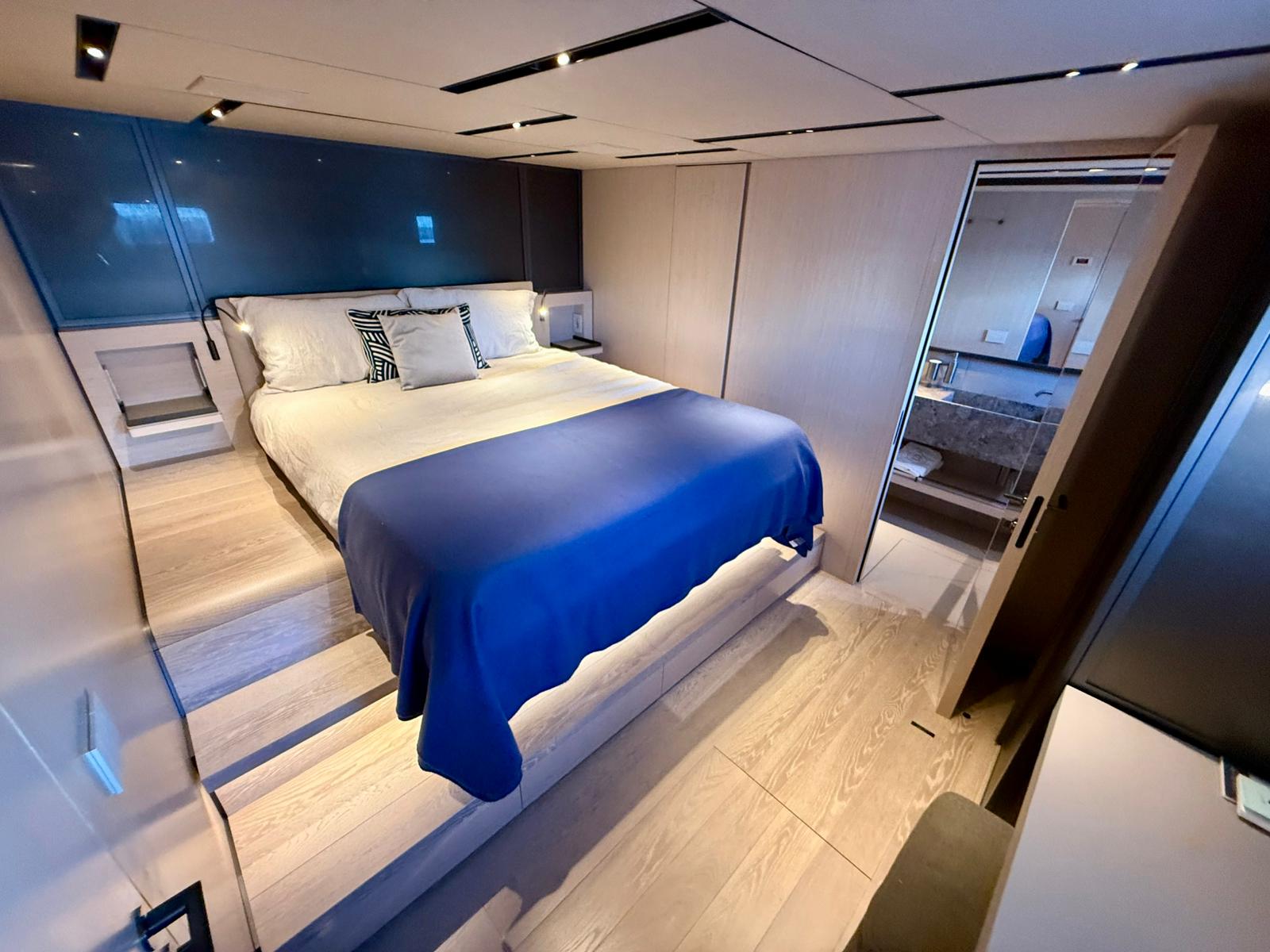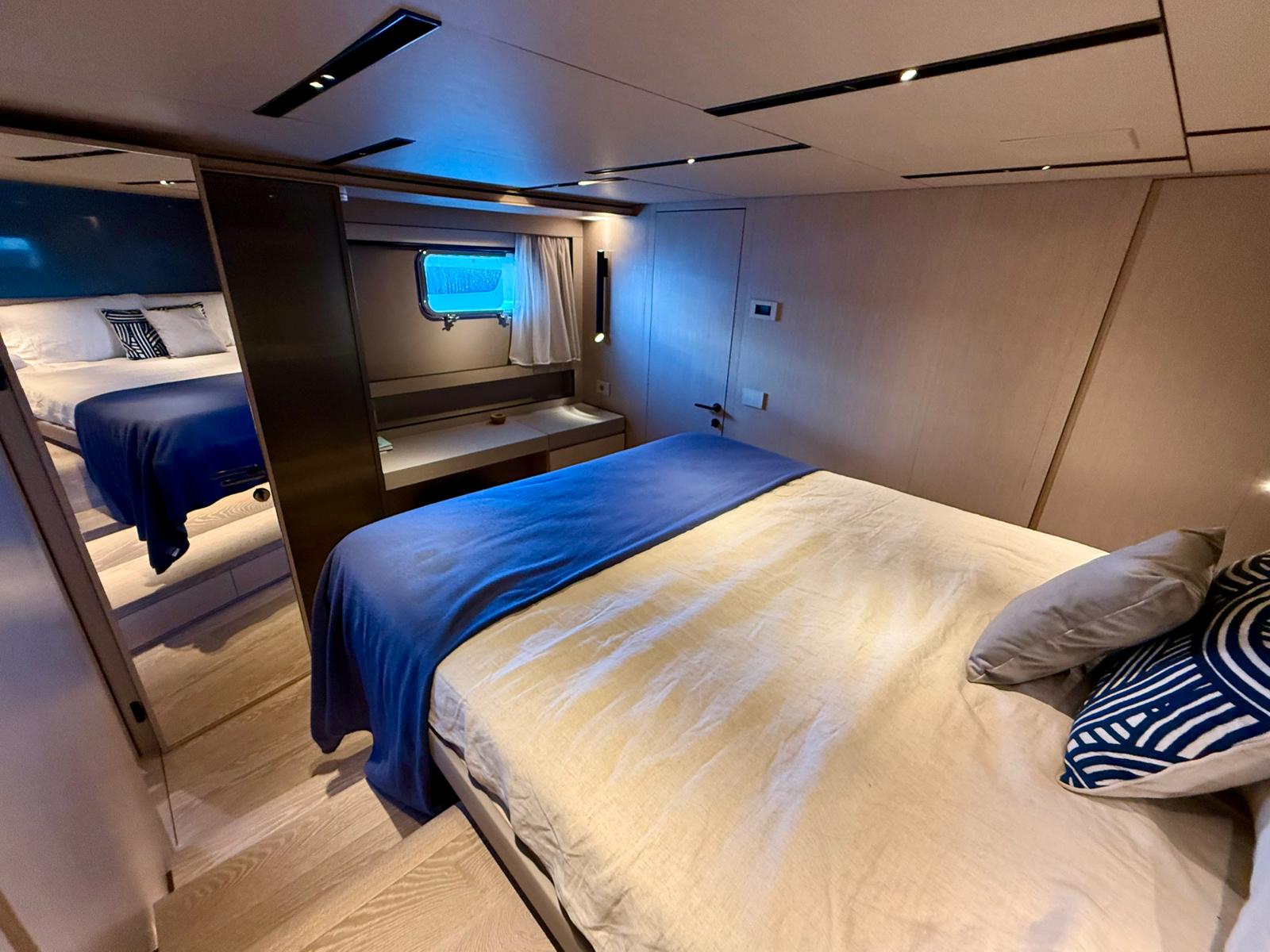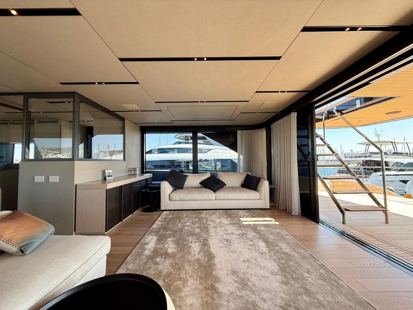 Consistent with the Sanlorenzo Group’s positioning, she is first and foremost a luxurious, beautiful motor yacht that “by chance” has not one hull, but two. Not even in this last feature, though, it can be compared to any existing catamaran on the market. Primarily because, from the first glance, the shape of the boat moves away from the “boxy” shape of a catamaran, thanks to the reduced width in favour of a ratio between beam and length closer to a monohull. This allows for the horizontal surfaces between the two hulls to connect creating a single volume as if it were a monohull; but with larger spaces and the possibility of having a full beam owner’s cabin of extraordinary dimensions.