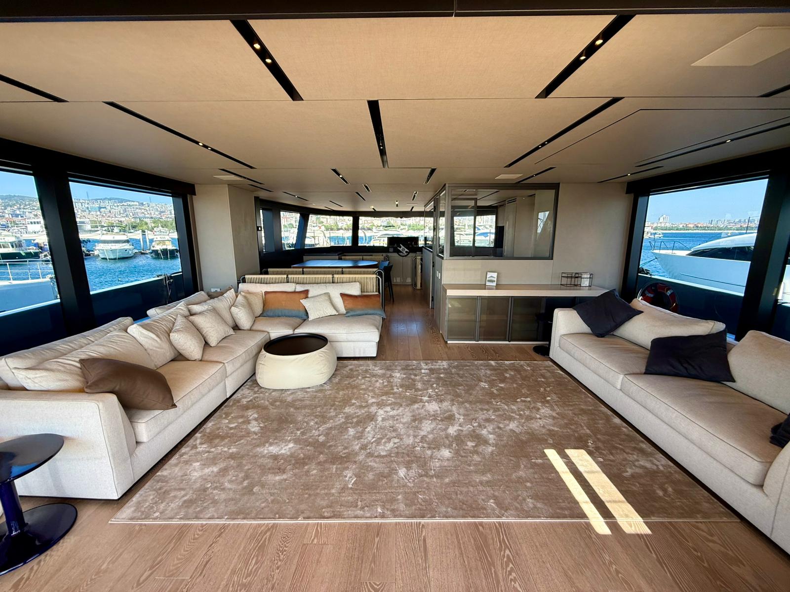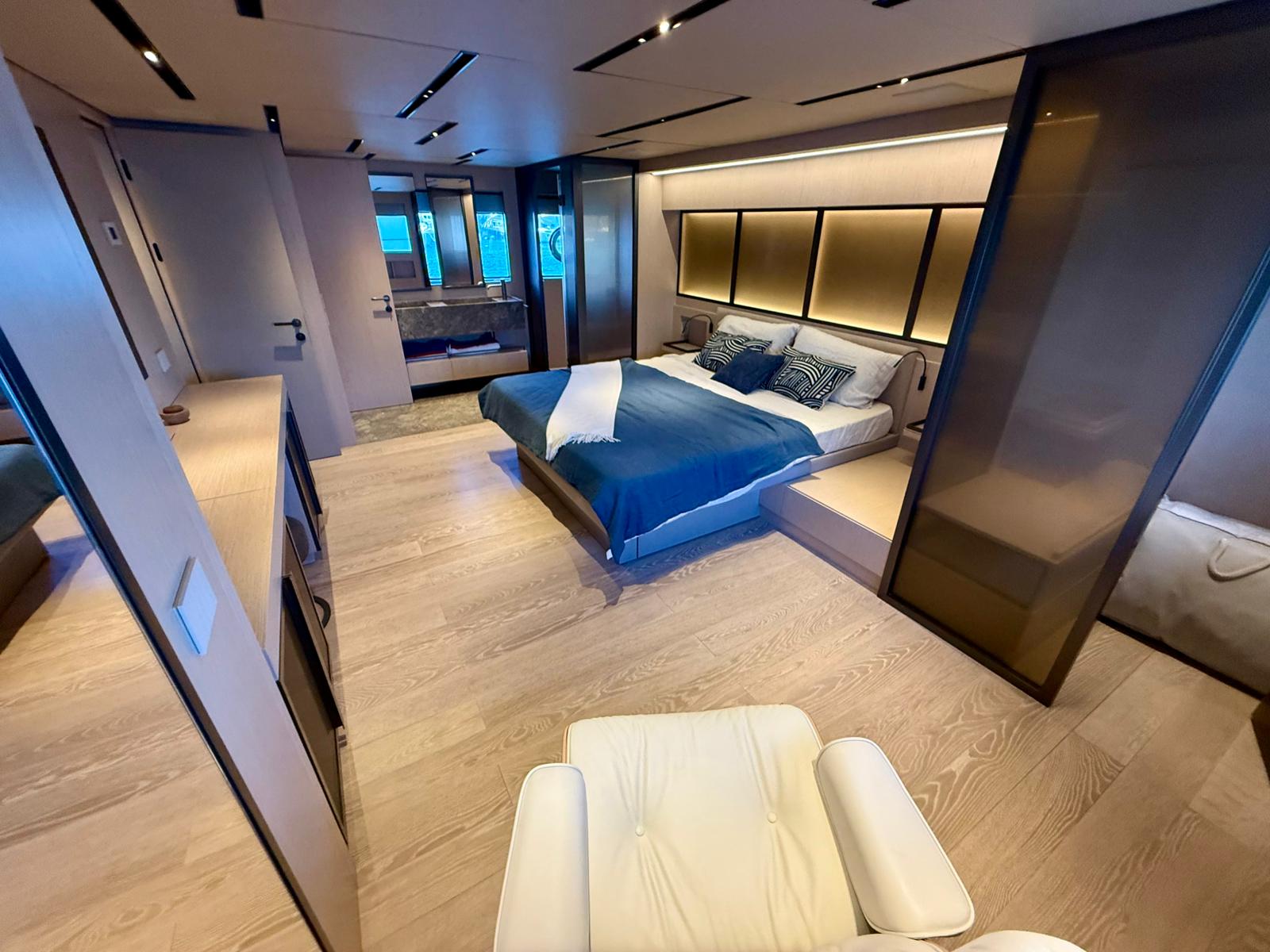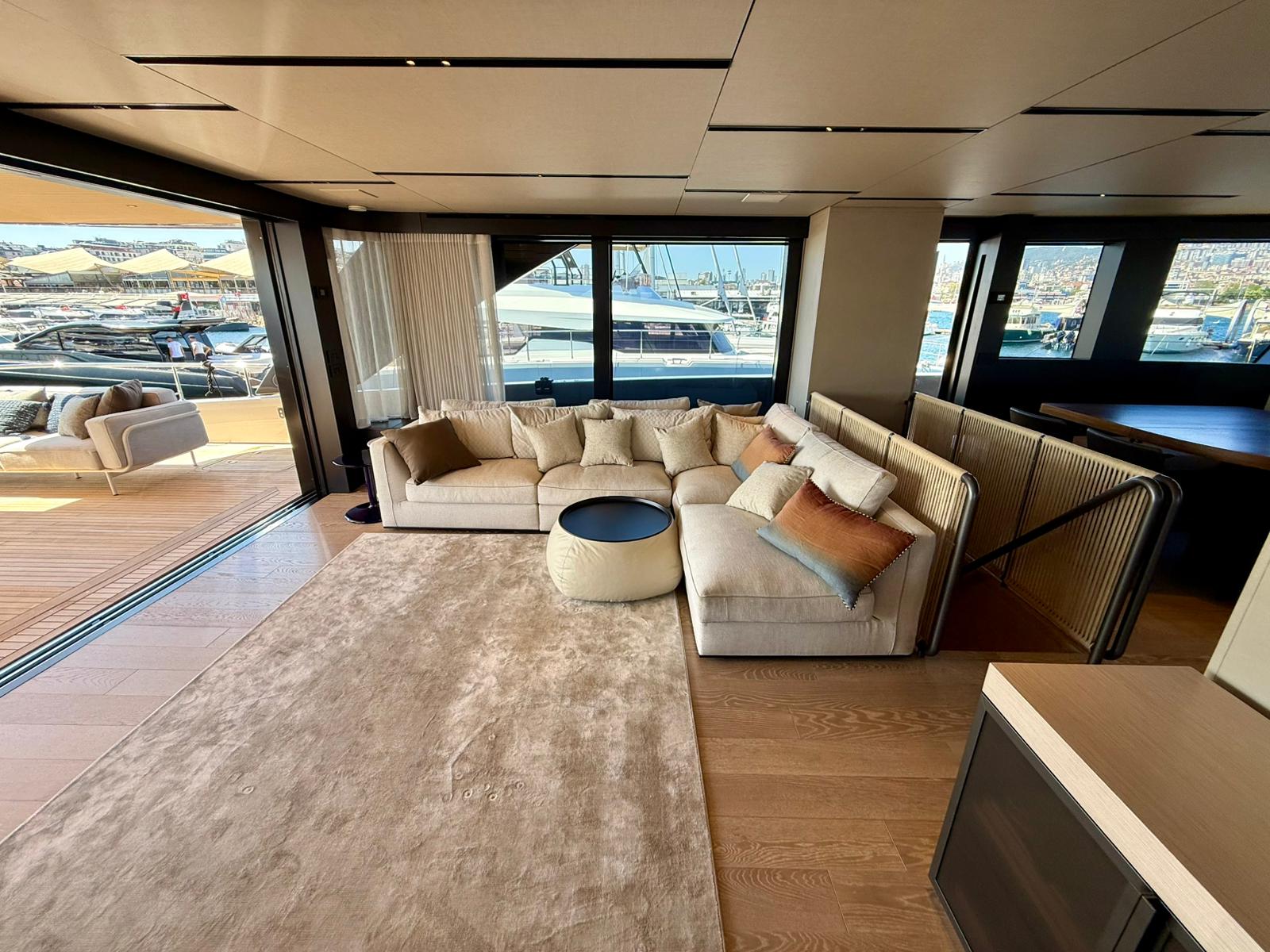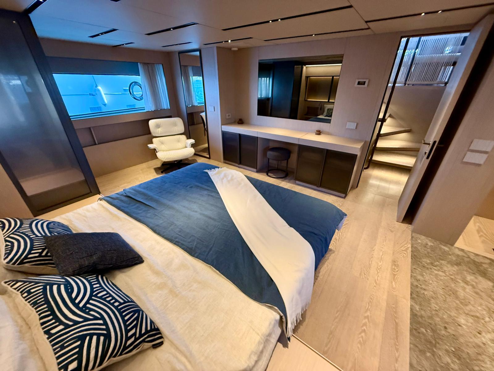 Consistent with the Sanlorenzo Group’s positioning, she is first and foremost a luxurious, beautiful motor yacht that “by chance” has not one hull, but two. Not even in this last feature, though, it can be compared to any existing catamaran on the market. Primarily because, from the first glance, the shape of the boat moves away from the “boxy” shape of a catamaran, thanks to the reduced width in favour of a ratio between beam and length closer to a monohull. This allows for the horizontal surfaces between the two hulls to connect creating a single volume as if it were a monohull; but with larger spaces and the possibility of having a full beam owner’s cabin of extraordinary dimensions.