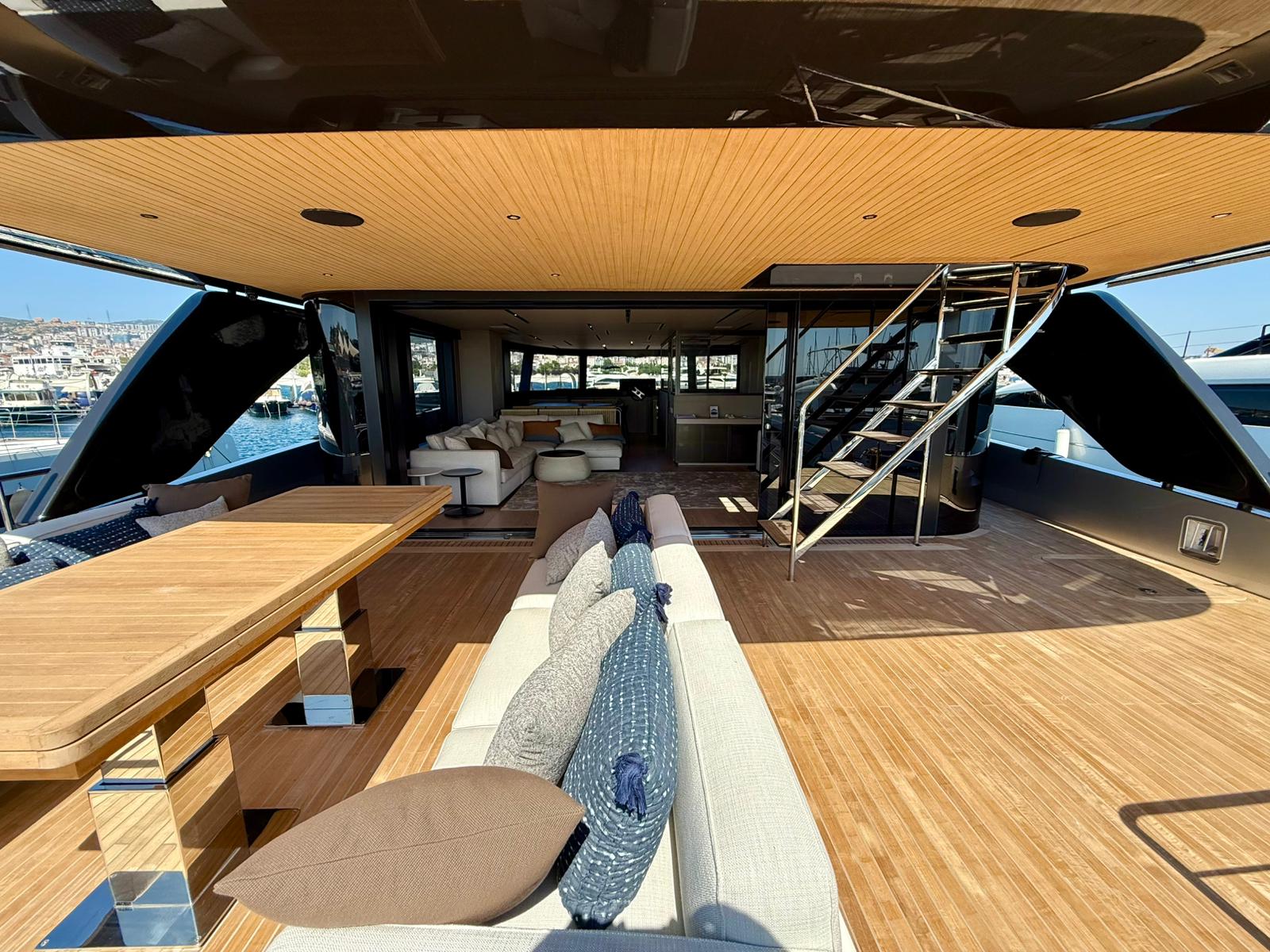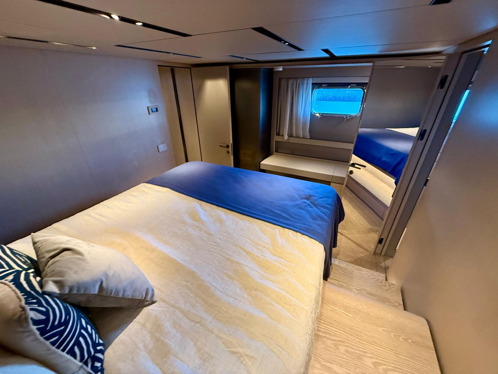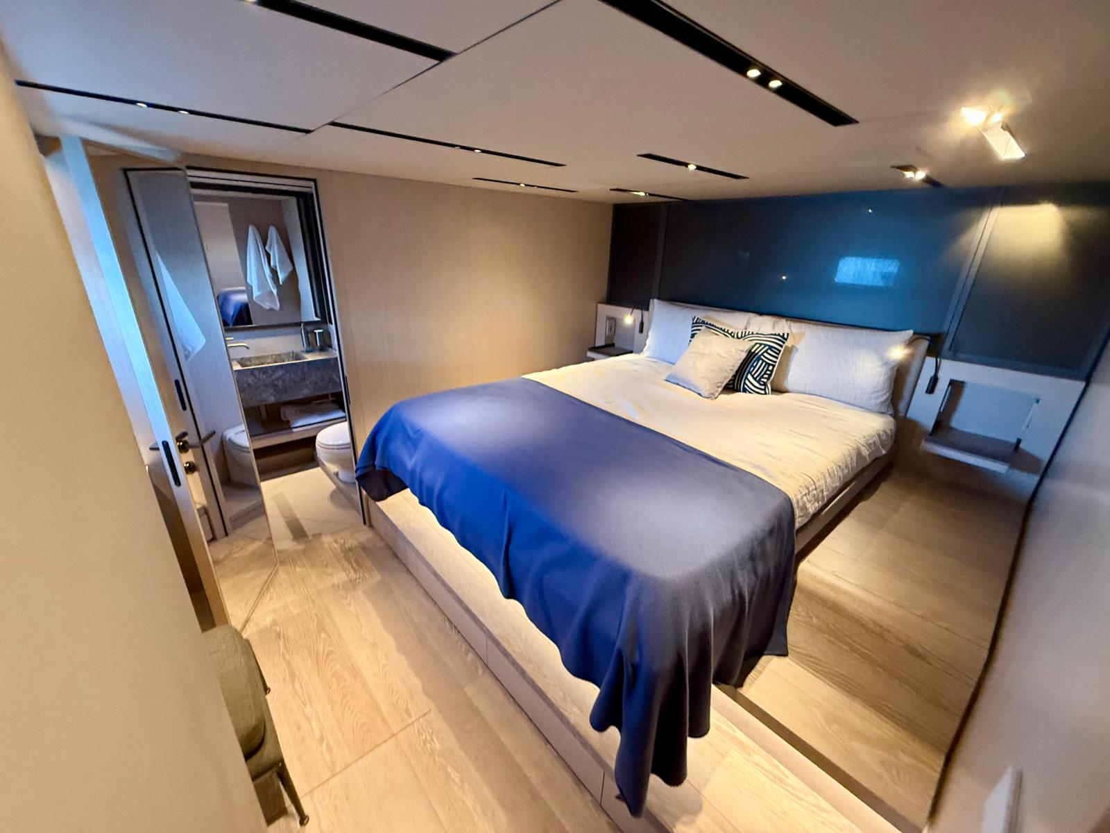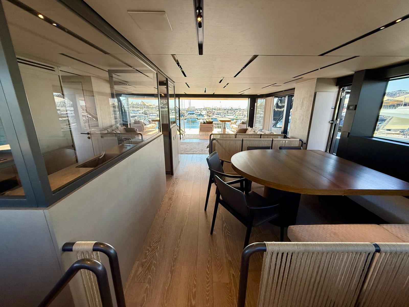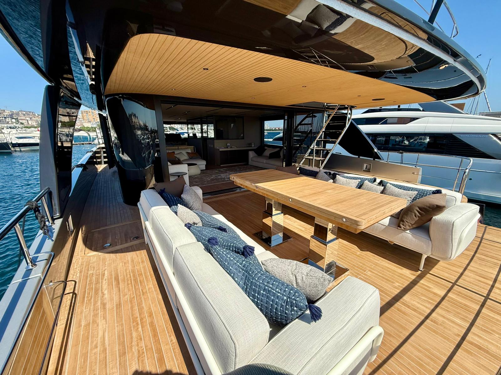 Consistent with the Sanlorenzo Group’s positioning, she is first and foremost a luxurious, beautiful motor yacht that “by chance” has not one hull, but two. Not even in this last feature, though, it can be compared to any existing catamaran on the market. Primarily because, from the first glance, the shape of the boat moves away from the “boxy” shape of a catamaran, thanks to the reduced width in favour of a ratio between beam and length closer to a monohull. This allows for the horizontal surfaces between the two hulls to connect creating a single volume as if it were a monohull; but with larger spaces and the possibility of having a full beam owner’s cabin of extraordinary dimensions.