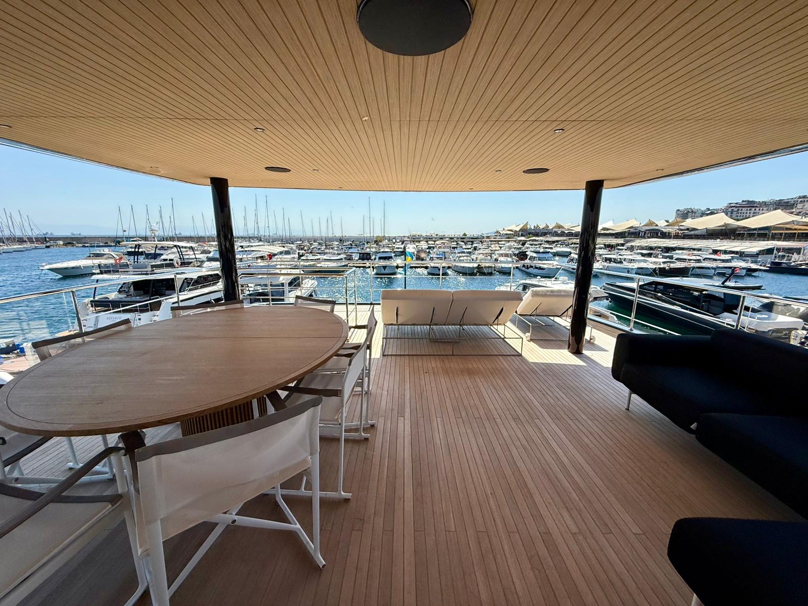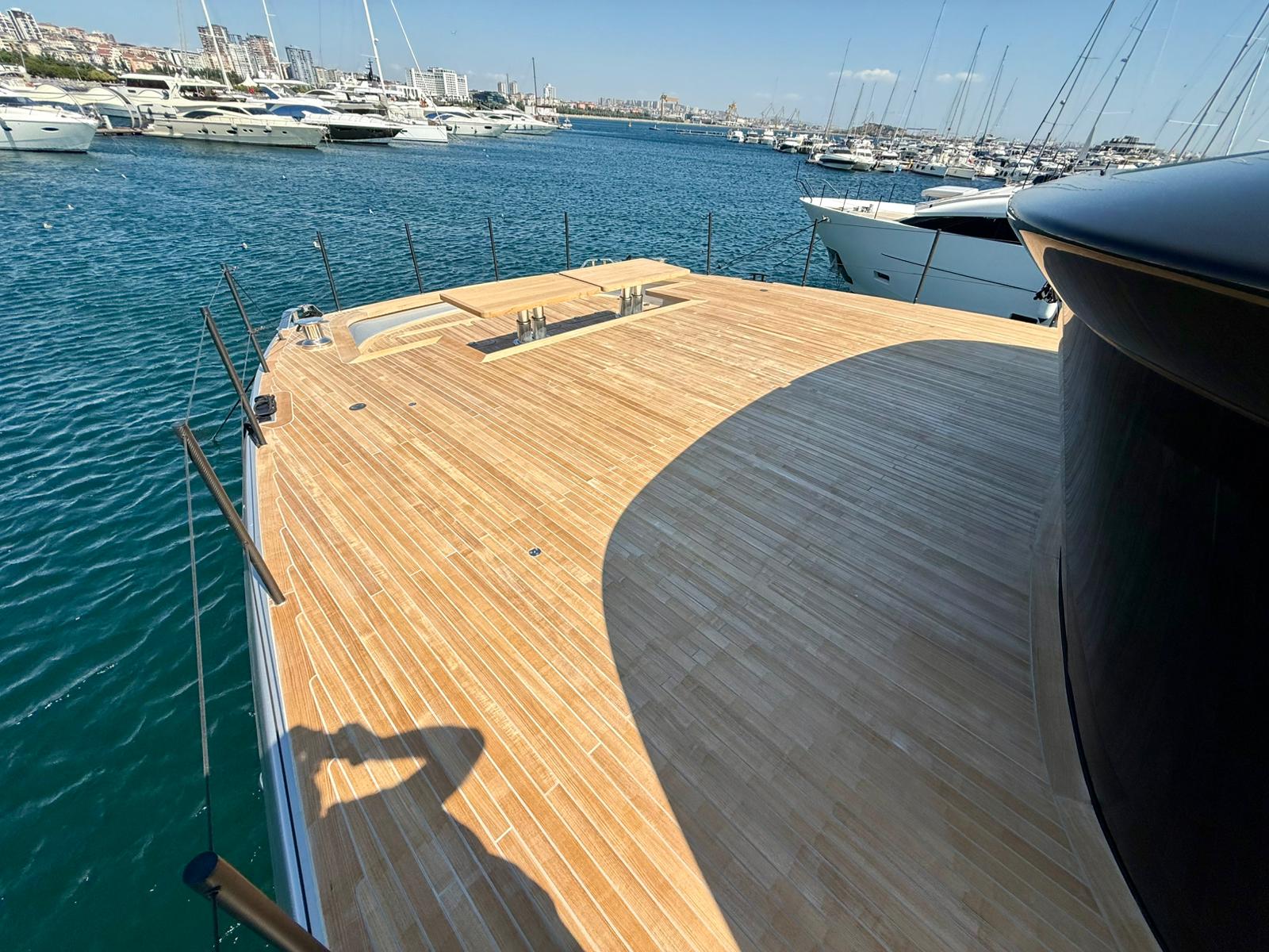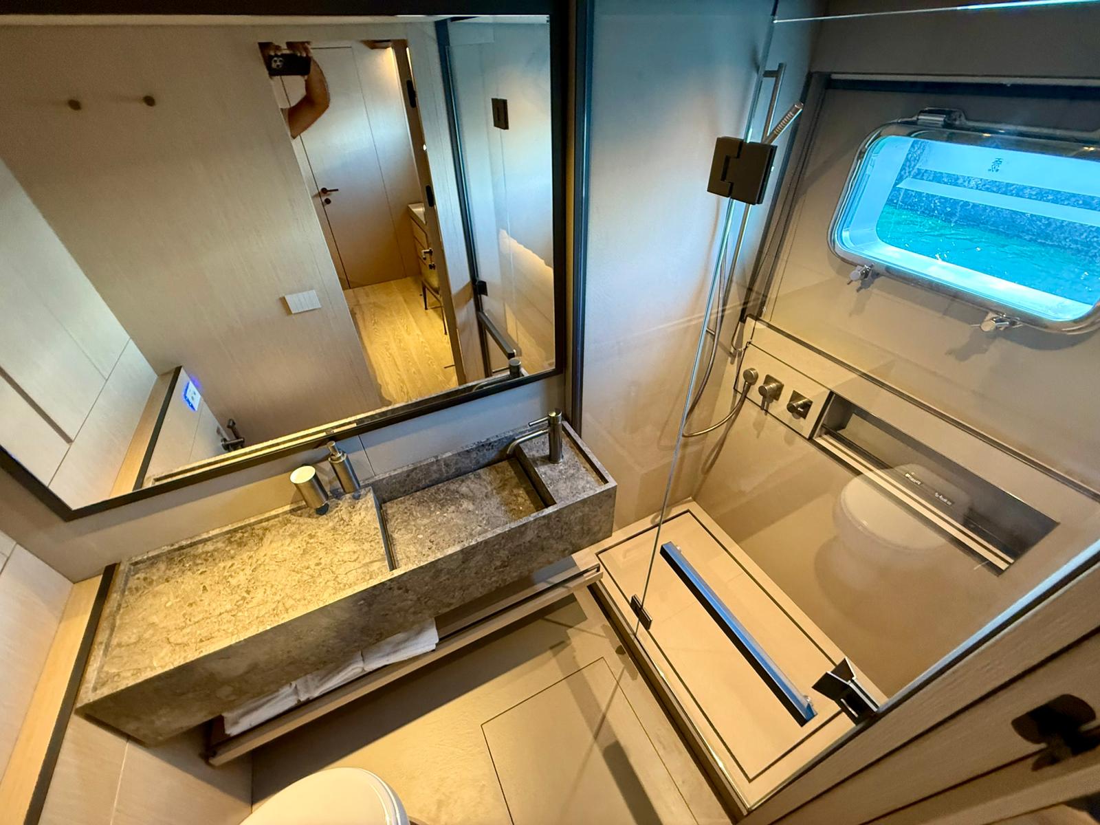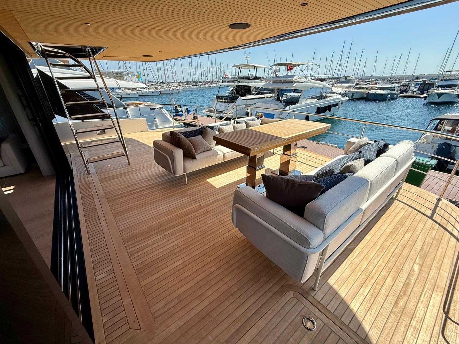 Consistent with the Sanlorenzo Group’s positioning, she is first and foremost a luxurious, beautiful motor yacht that “by chance” has not one hull, but two. Not even in this last feature, though, it can be compared to any existing catamaran on the market. Primarily because, from the first glance, the shape of the boat moves away from the “boxy” shape of a catamaran, thanks to the reduced width in favour of a ratio between beam and length closer to a monohull. This allows for the horizontal surfaces between the two hulls to connect creating a single volume as if it were a monohull; but with larger spaces and the possibility of having a full beam owner’s cabin of extraordinary dimensions.