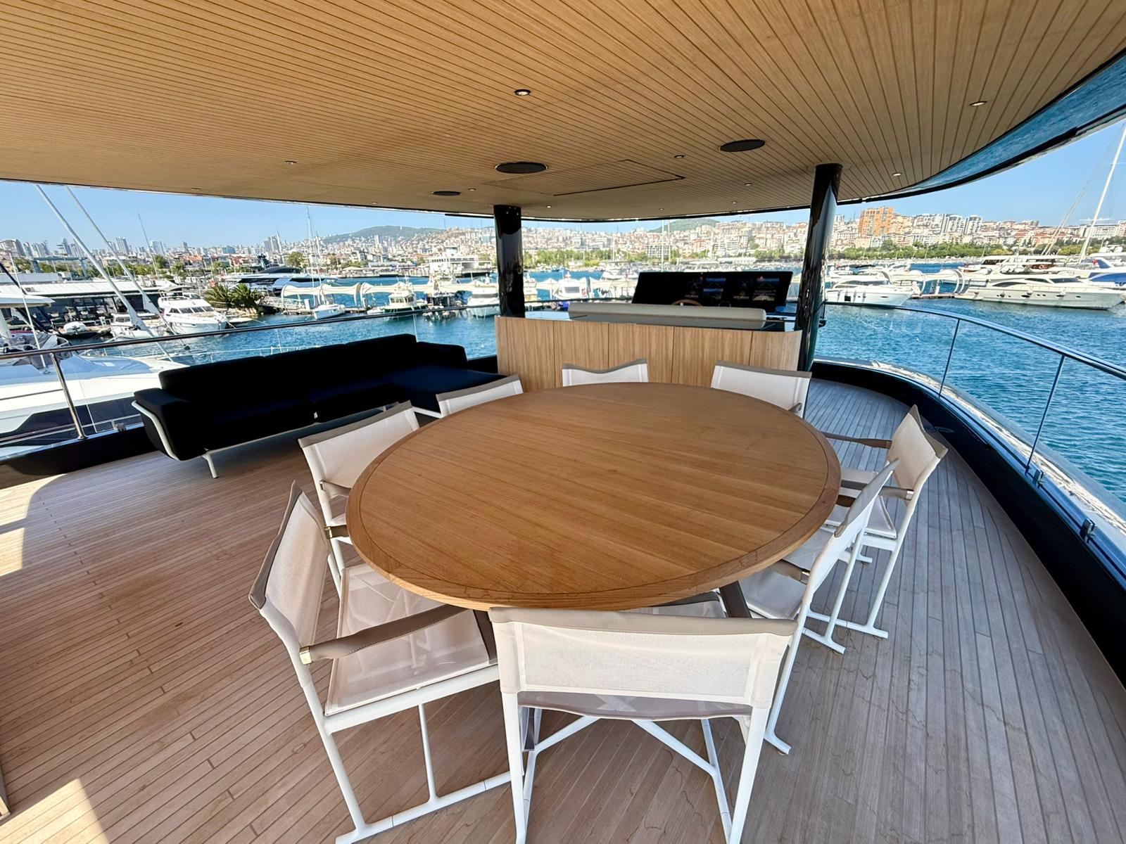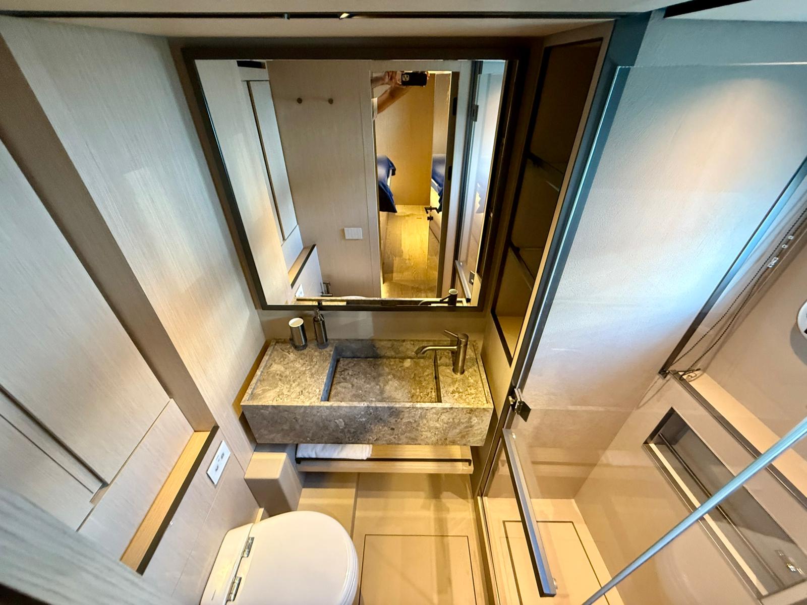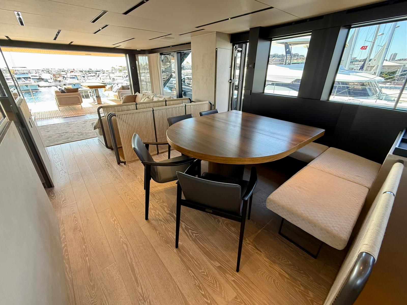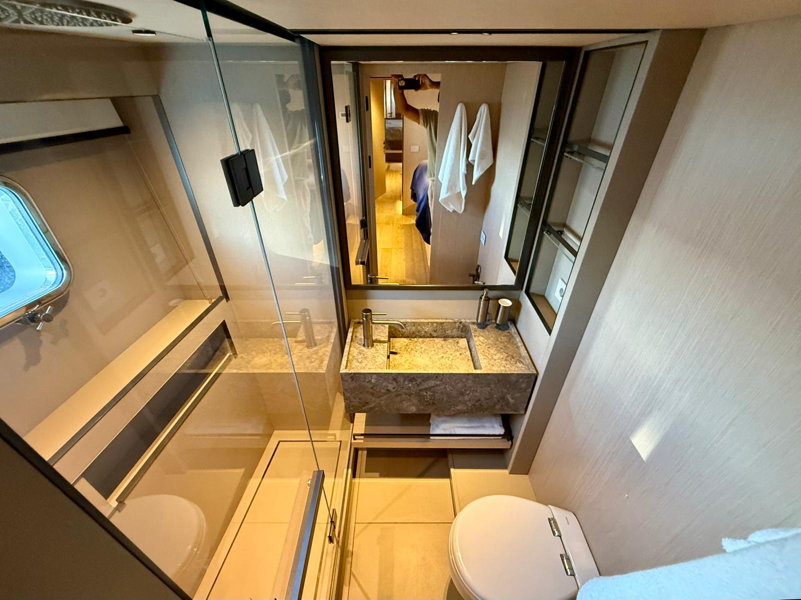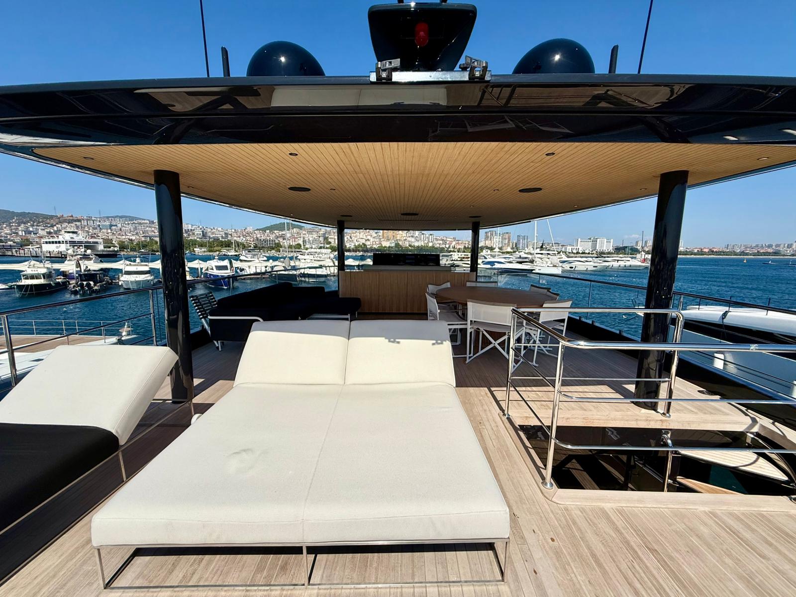 Consistent with the Sanlorenzo Group’s positioning, she is first and foremost a luxurious, beautiful motor yacht that “by chance” has not one hull, but two. Not even in this last feature, though, it can be compared to any existing catamaran on the market. Primarily because, from the first glance, the shape of the boat moves away from the “boxy” shape of a catamaran, thanks to the reduced width in favour of a ratio between beam and length closer to a monohull. This allows for the horizontal surfaces between the two hulls to connect creating a single volume as if it were a monohull; but with larger spaces and the possibility of having a full beam owner’s cabin of extraordinary dimensions.