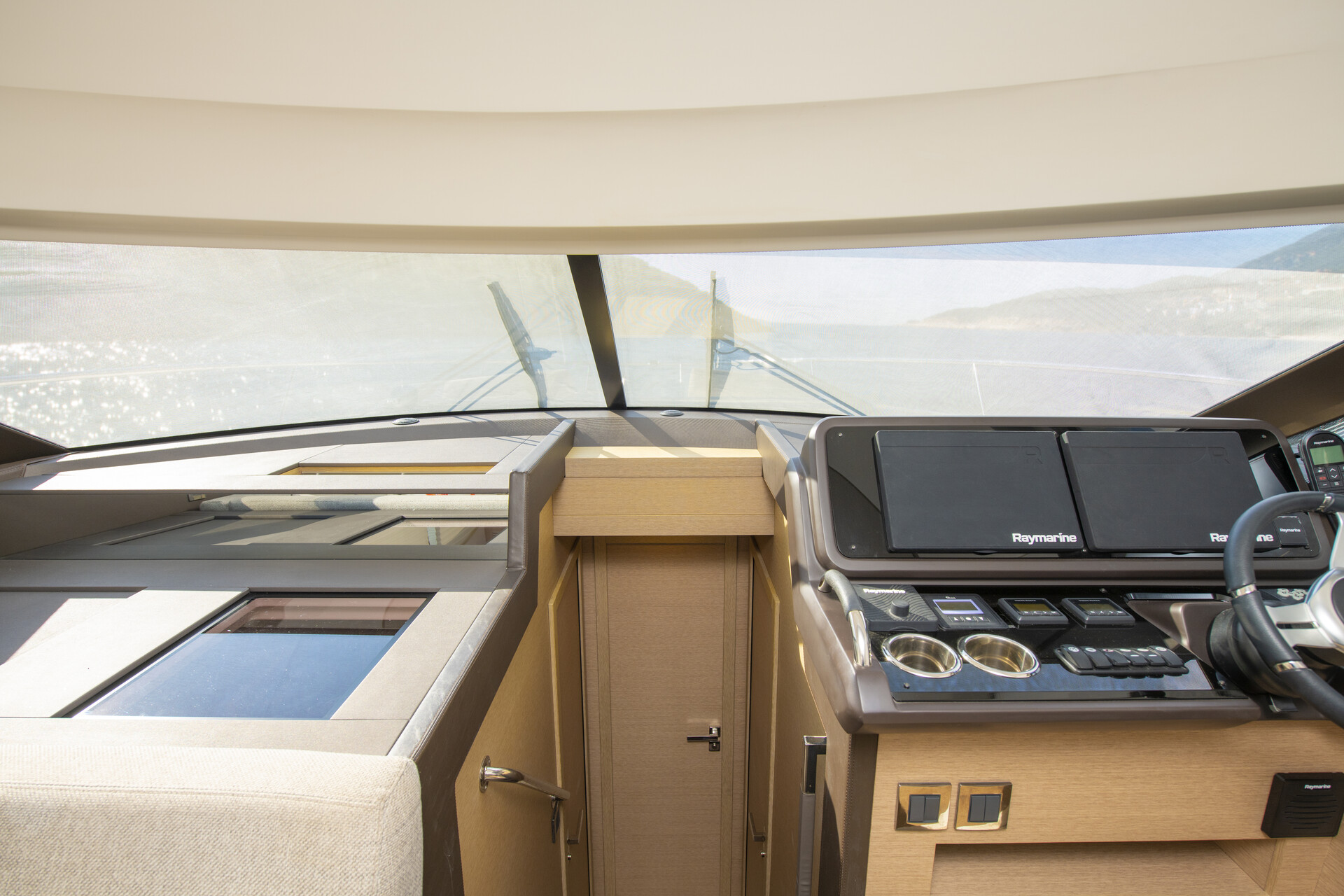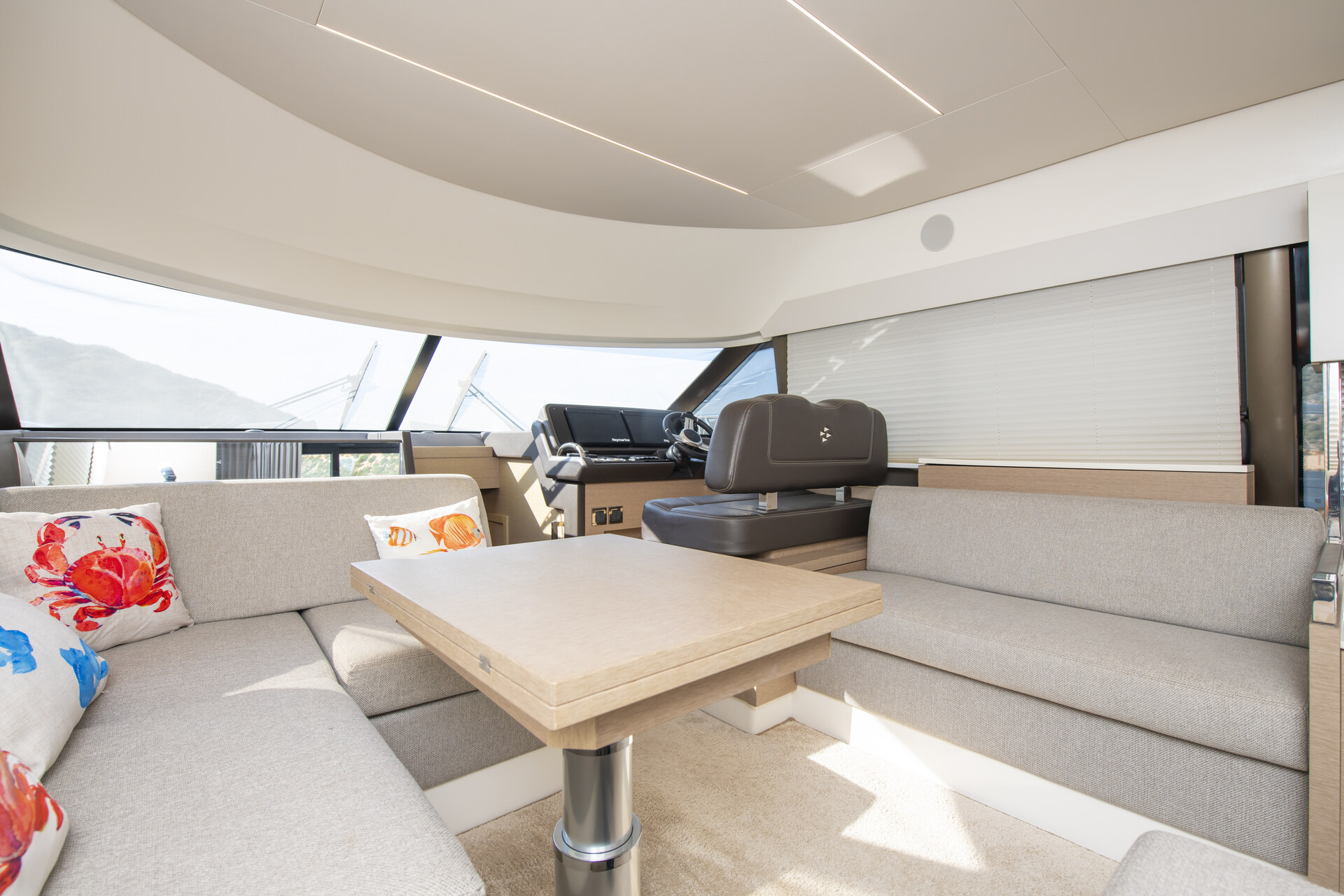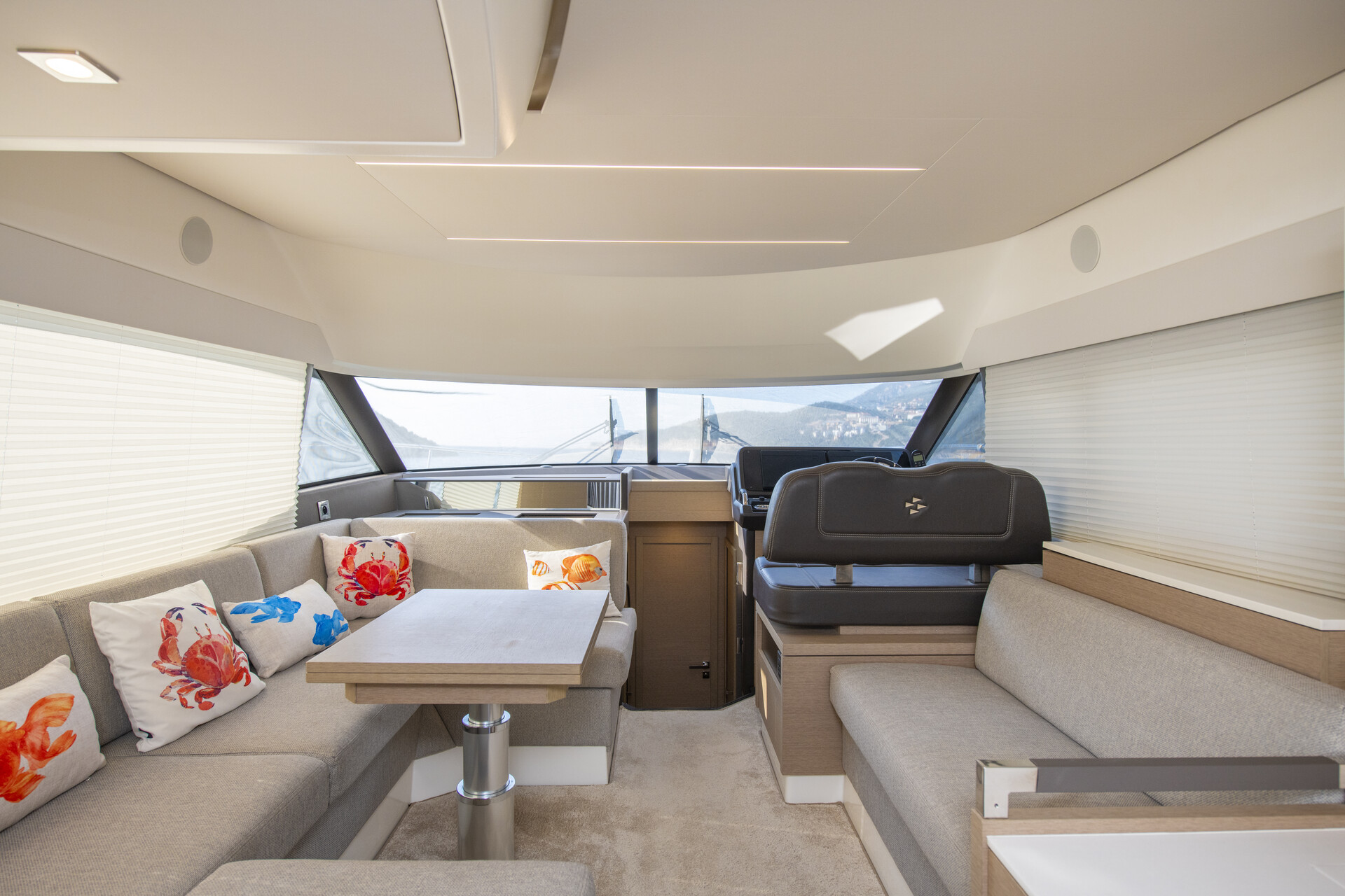 On board, everything has been optimised to offer unequalled space and comfort. Combining the design talents of Garroni Design and JP Concepts, this Flybridge meets all the latest requirements and boasts all the benefits of a true PRESTIGE Yacht.