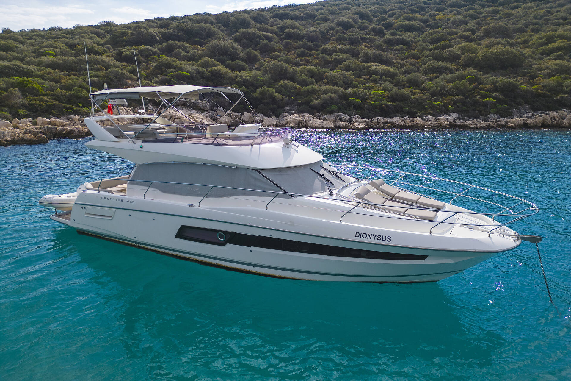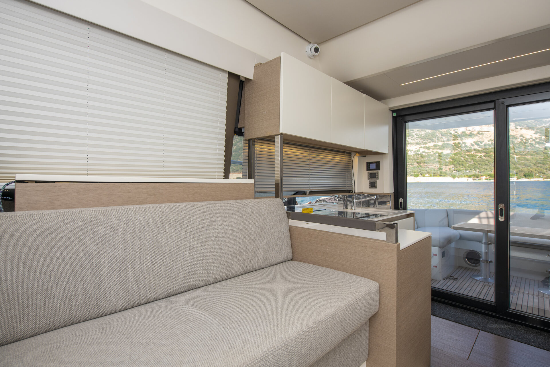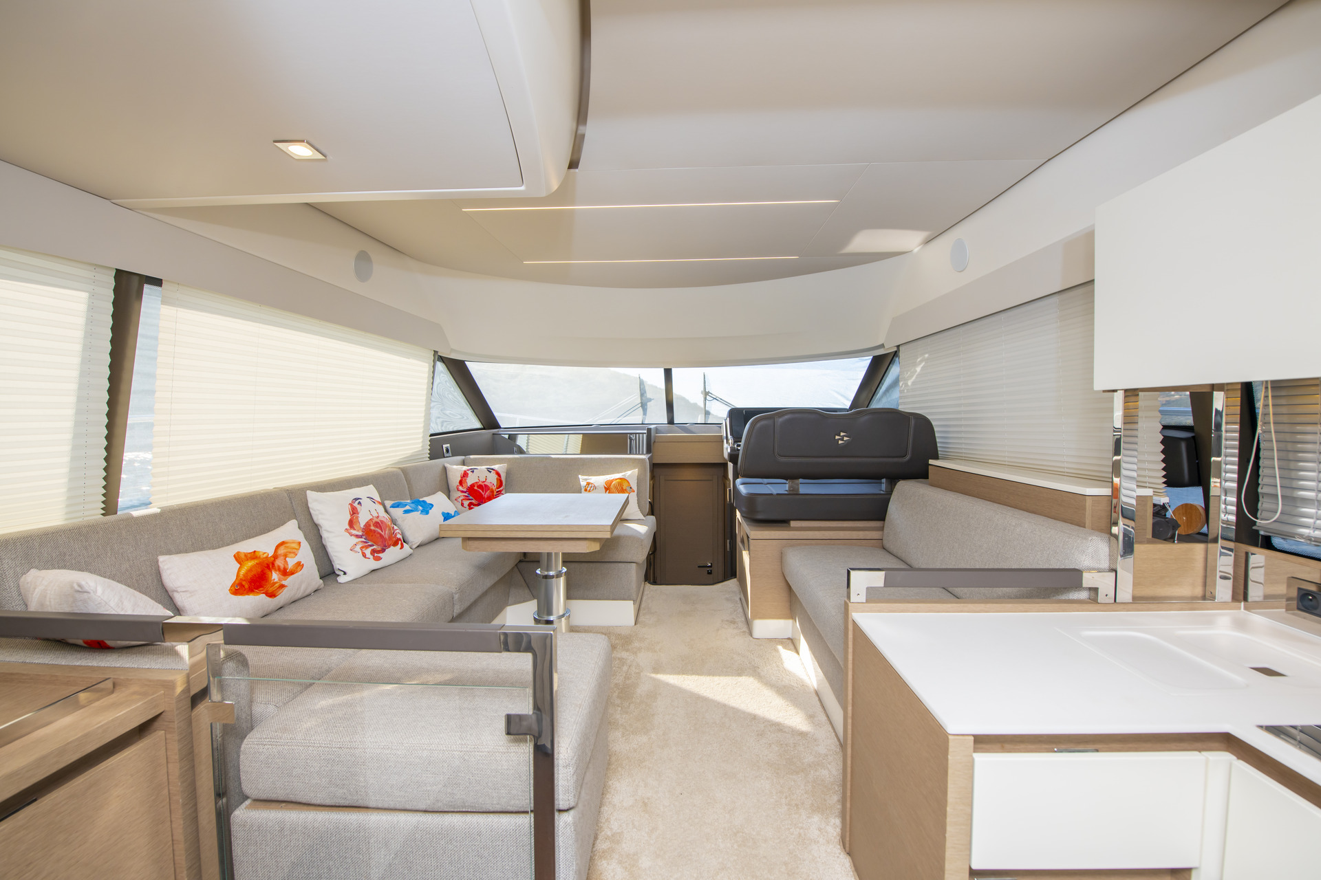 On board, everything has been optimised to offer unequalled space and comfort. Combining the design talents of Garroni Design and JP Concepts, this Flybridge meets all the latest requirements and boasts all the benefits of a true PRESTIGE Yacht.