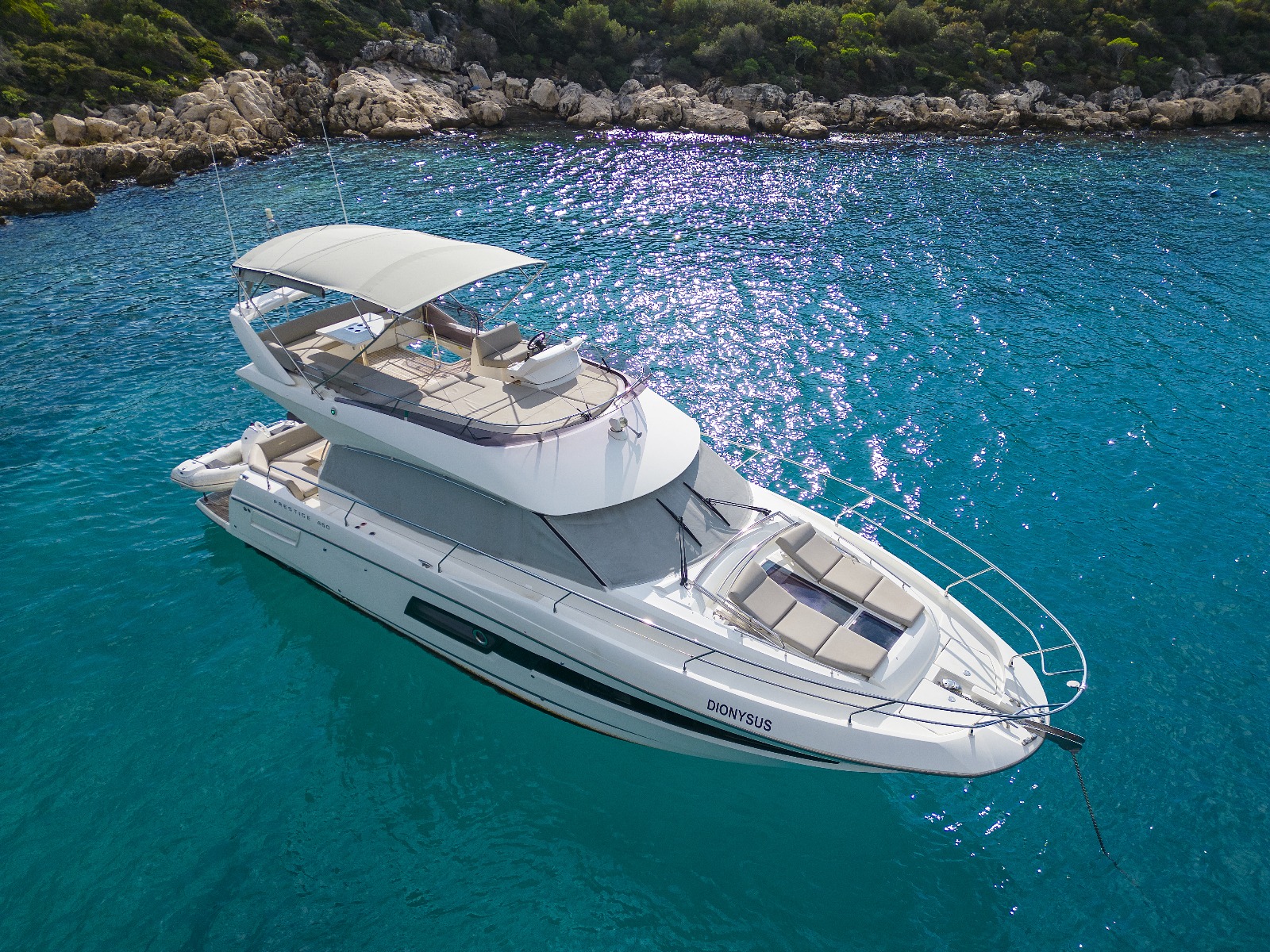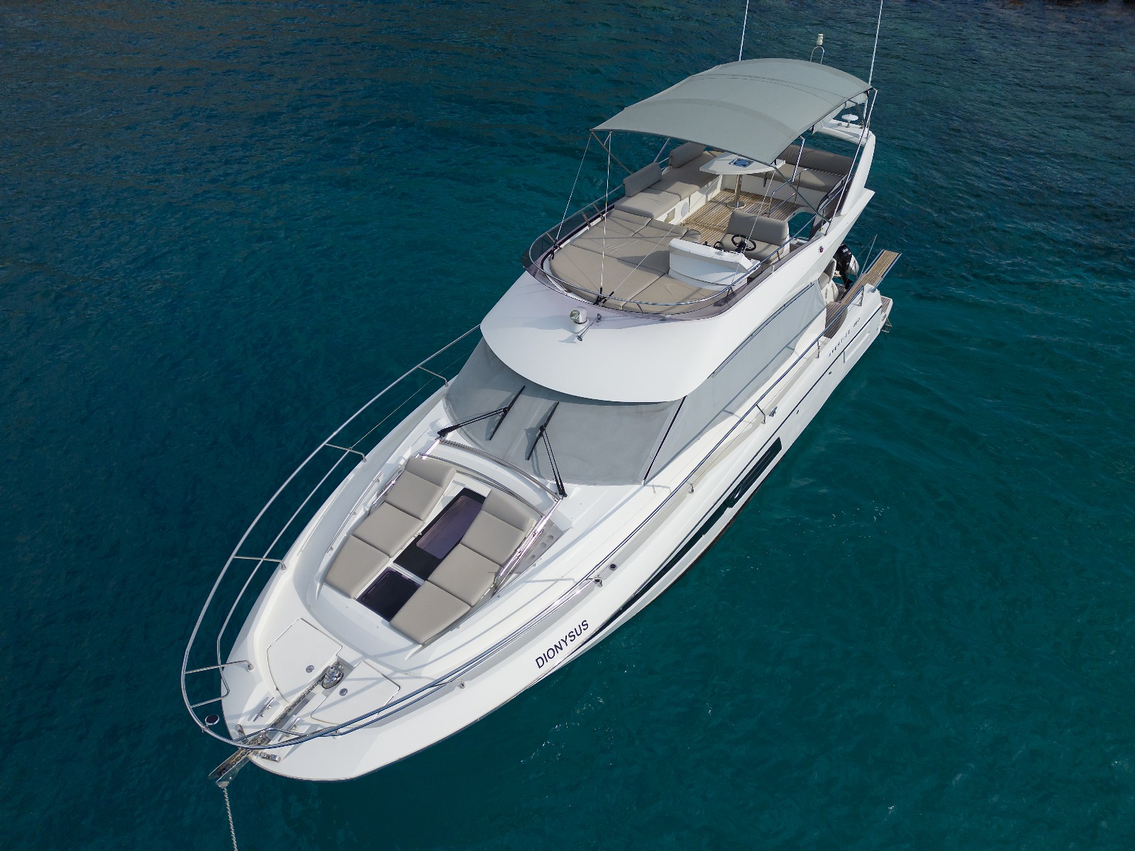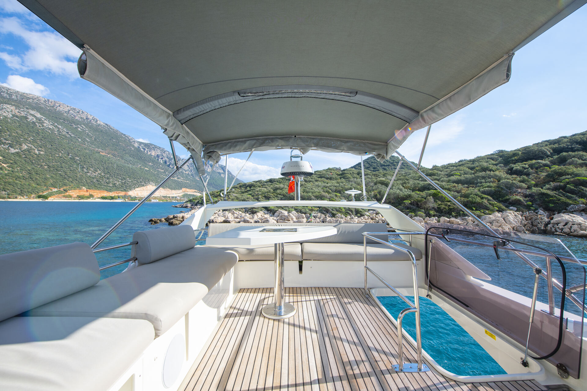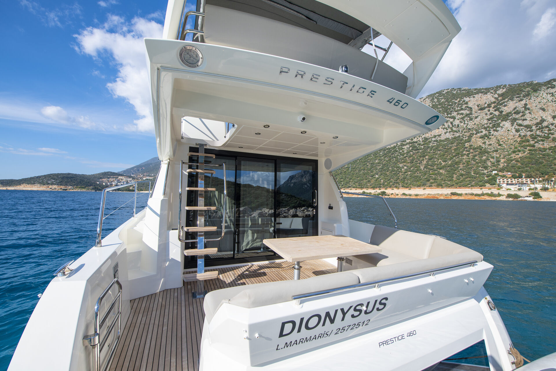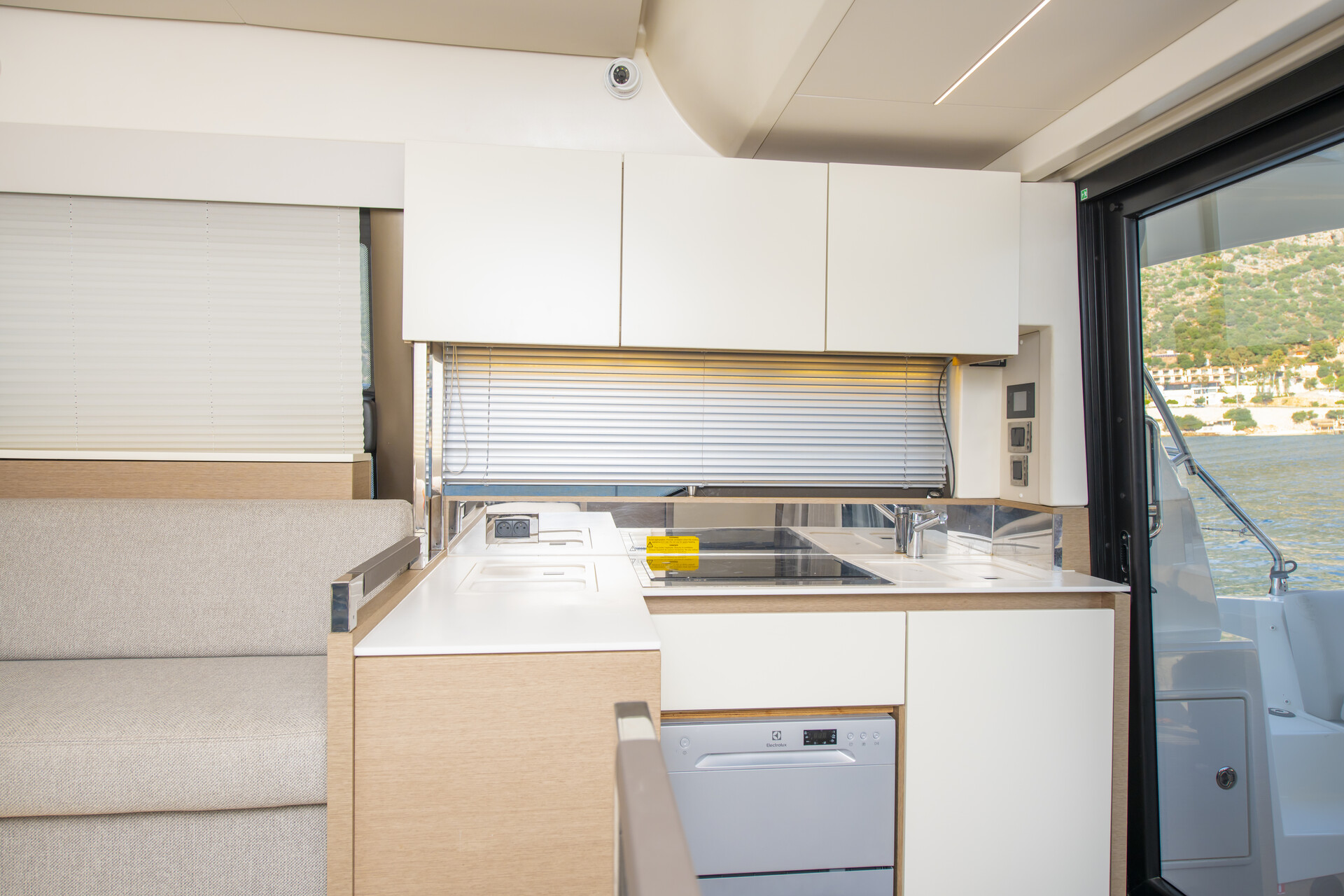 The contemporary layout of the exterior galley located to the aft opens onto an immense swim platform. The very comfortable Flybridge is an invitation to complete relaxation.