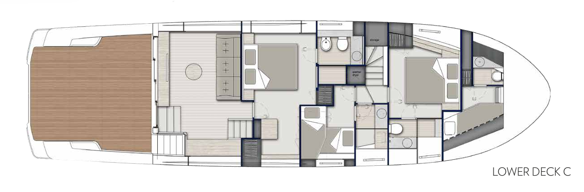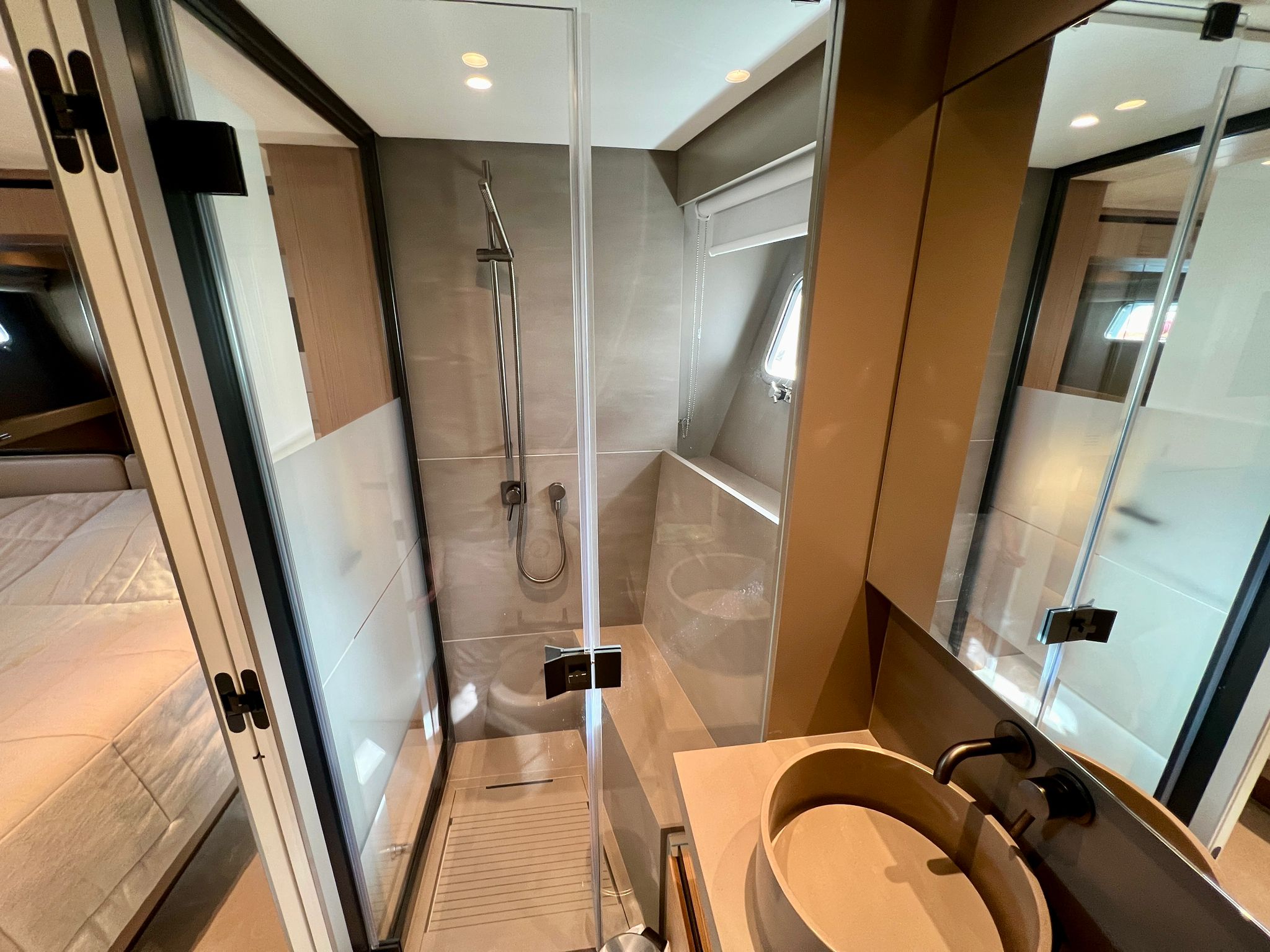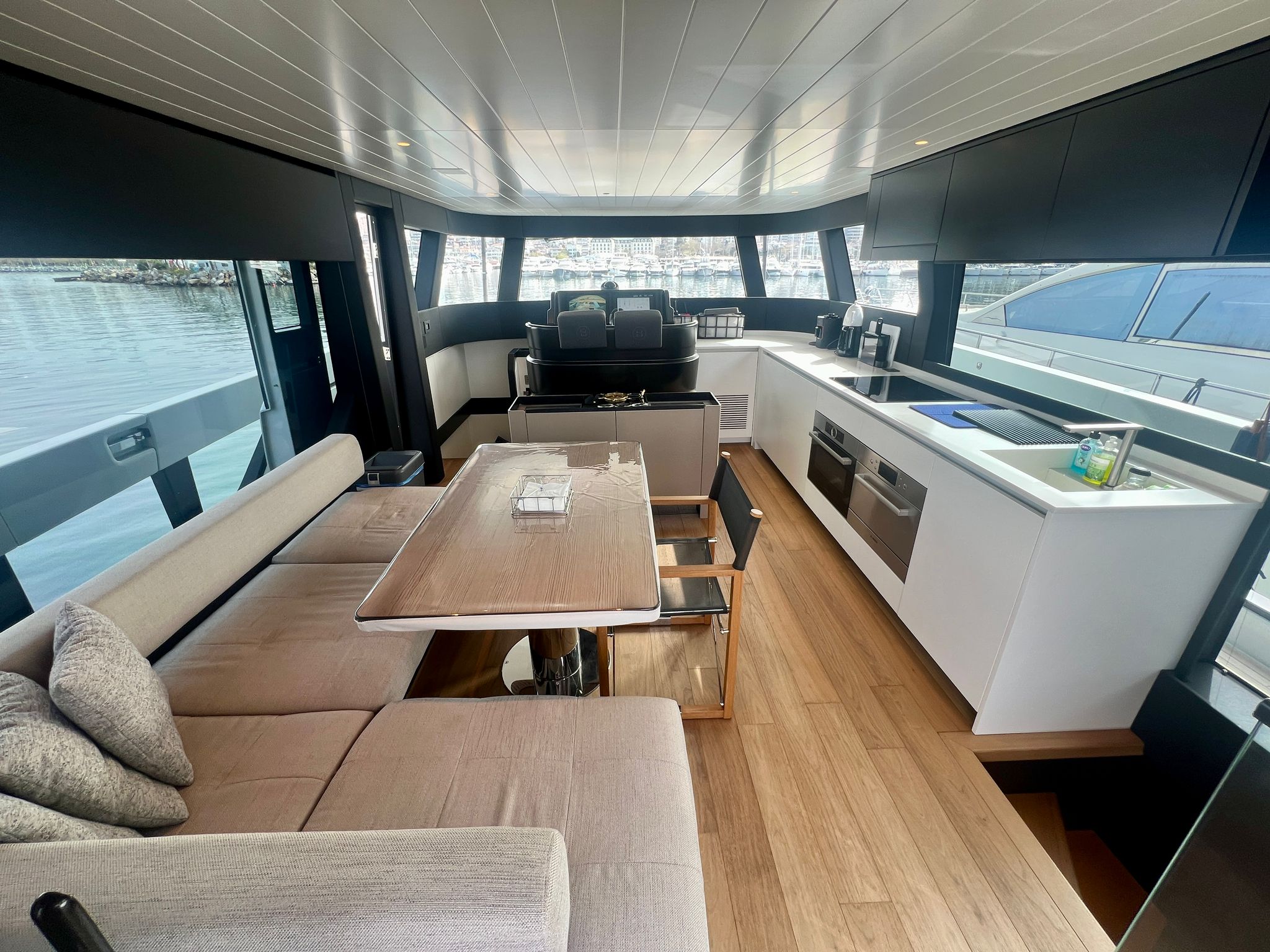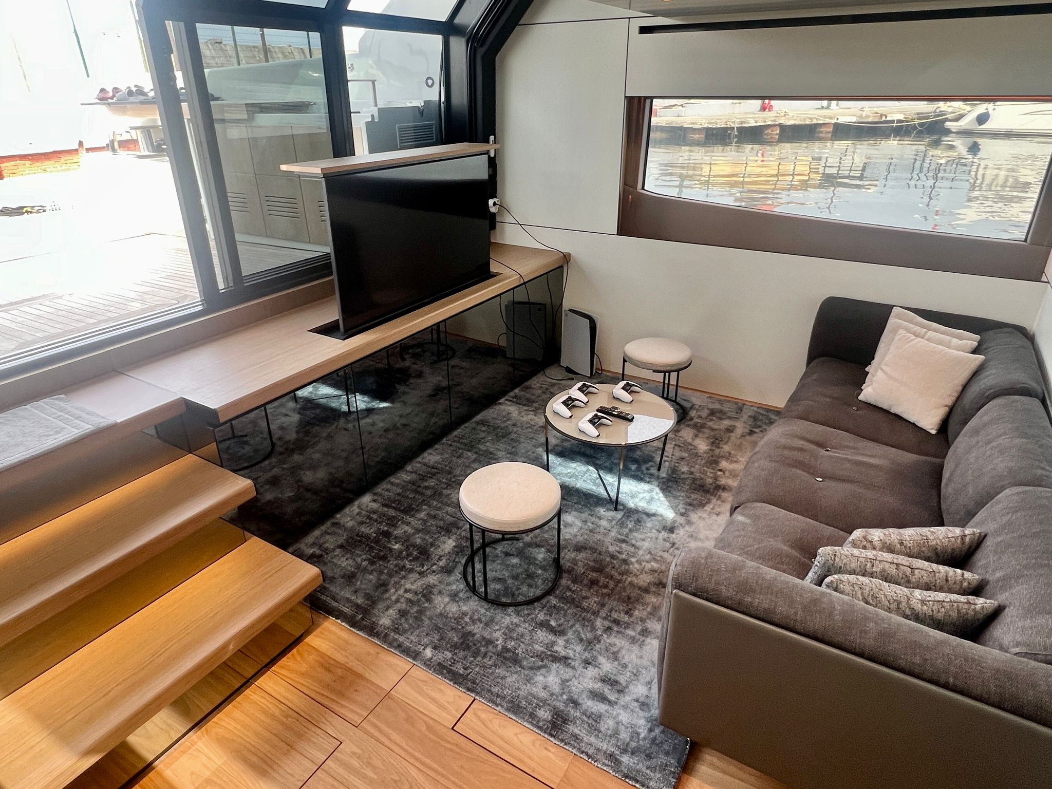Radikal tasarım değişiklikleriyle birçok türün en iyi özelliklerini bünyesinde toplayan Bluegame BGX70’in kazandığı başarı, BGX60’ta da sürdürülüyor. Serinin devasa ve salonla doğrudan bağlantılı kıç platformu, BGX60’ta da ilk dikkat çeken özelliklerden oluyor. Tekne gövdesinin 2/3’lük alanı tekne sahibine ayrılıyor. Doğrudan salona; oradan da geniş kıç platforma açılan ensuite kabine salondan erişilebiliyor. Diğer kabinlere üst kattan merdivenle farklı bir kısımdan girlebiliyor. Bu sayede mahremiyet artırılıyor. Sosyalleşmek için de bolca açık ve kapalı alan sunan model, işlevsel ve konfor özelliklerinin yanı sıra seyir kabiliyetiyle de hayranlık uyandırıyor.