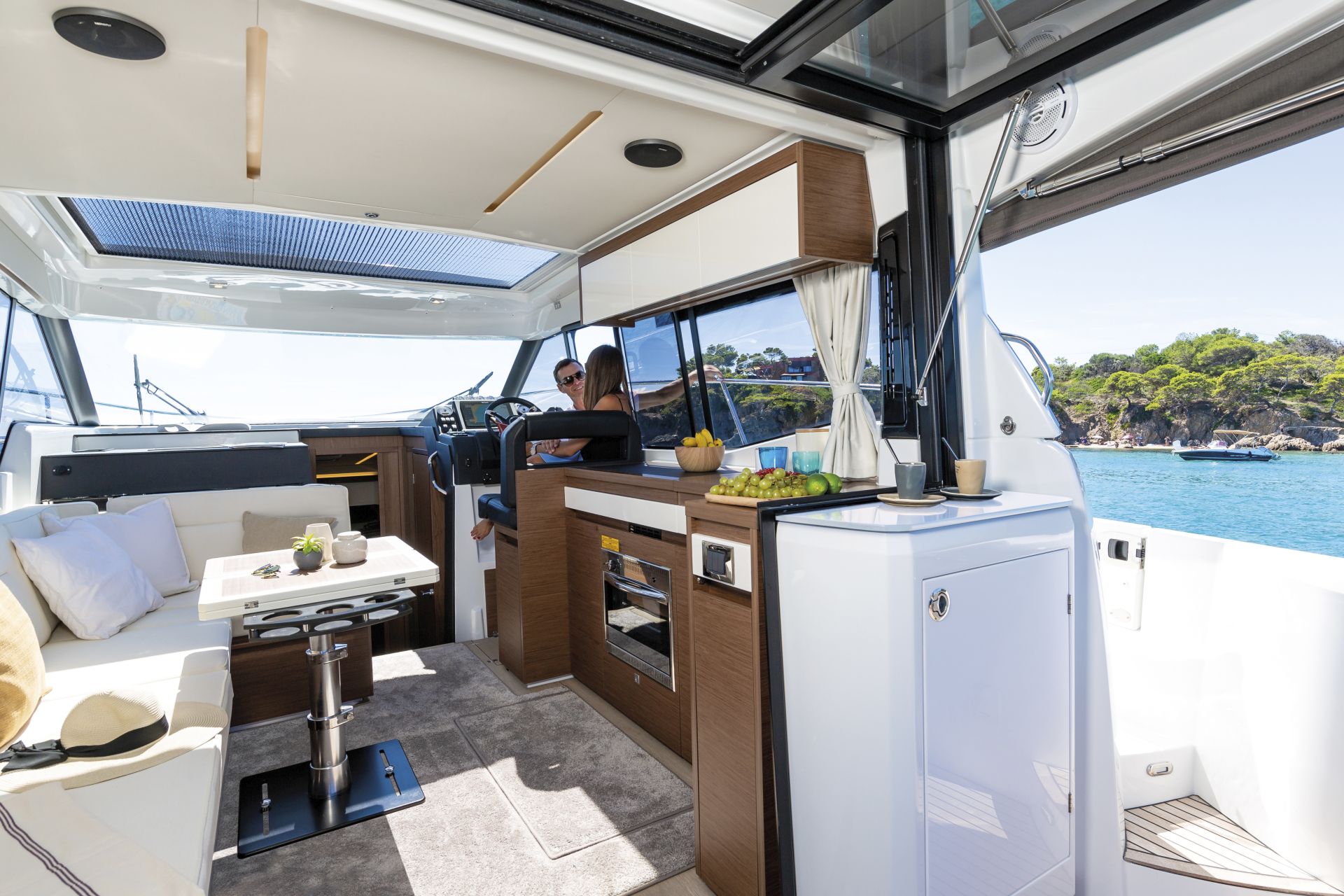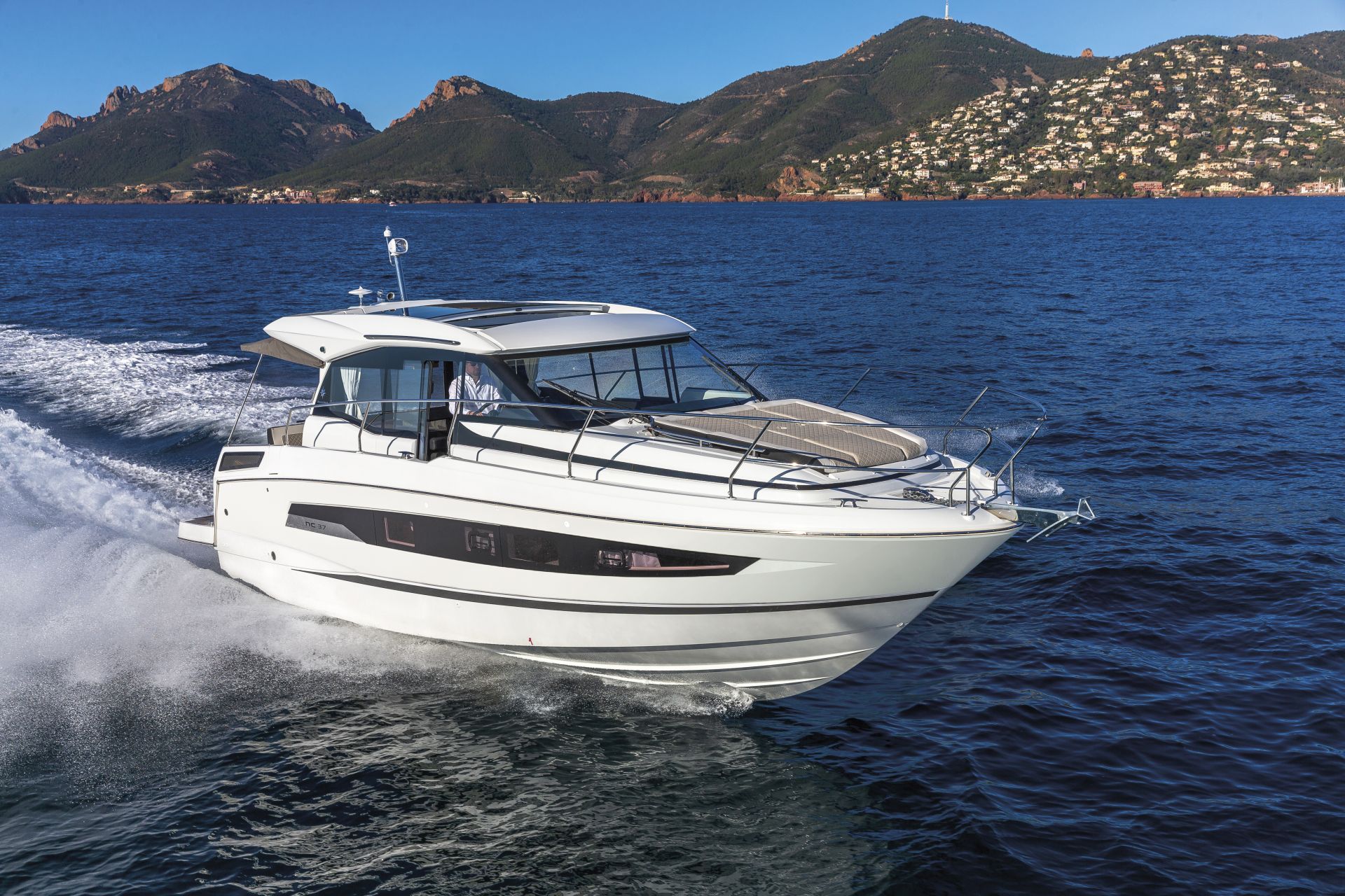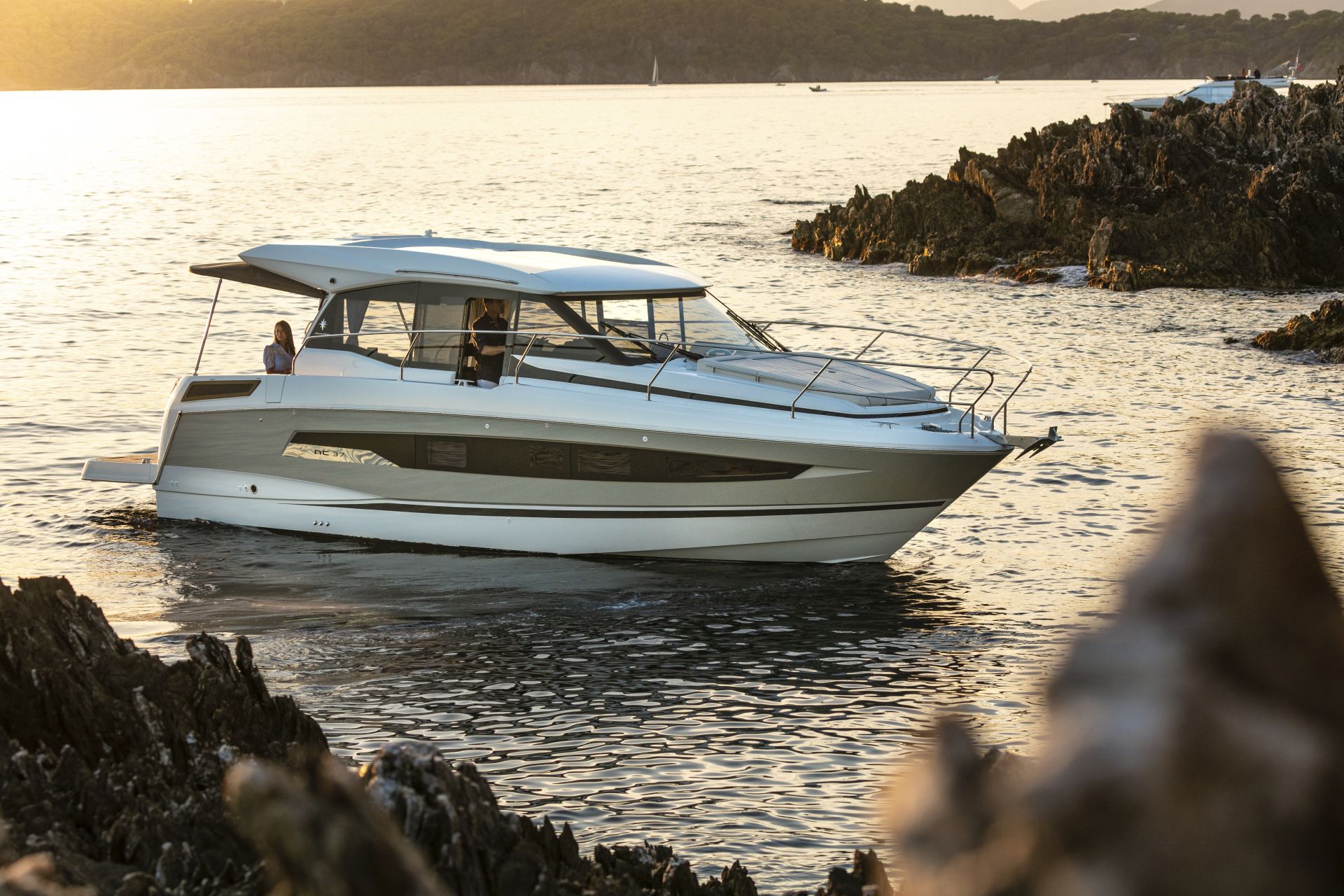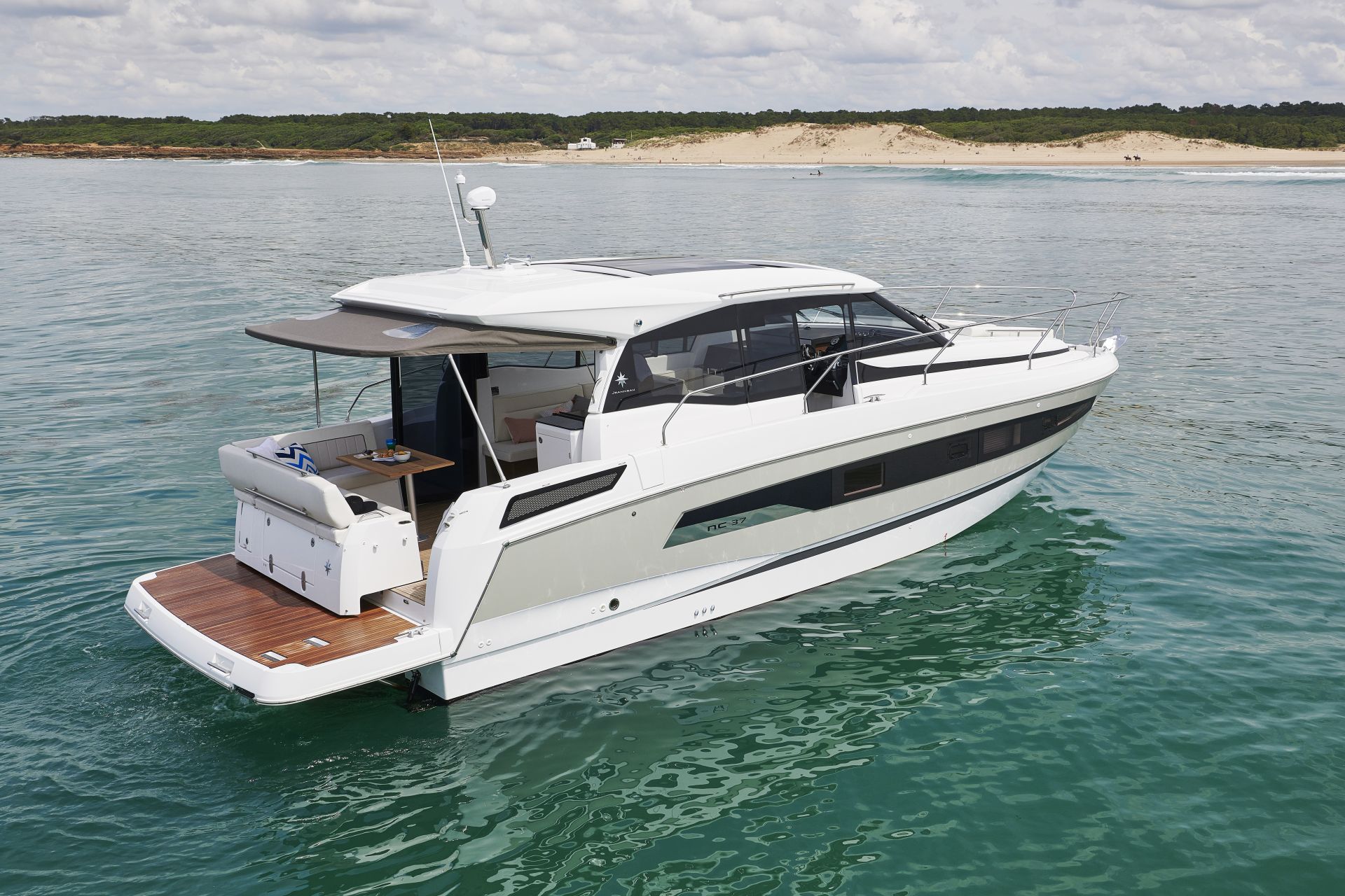 Dış kısımlarda azami ferahlık; içerideyse benzersiz rahatlık sunan NC 37, farklı kullanım senaryolarına uyum sağlamak üzere tasarlanıyor. Kıç taraftaki büyük yüzme platformuyla güneş altında rahatlamanın keyifni çıkarmanıza izin verirken, geniş havuzluğundaki geniş masada dostlarla hoş vakit geçireceğiniz ortam sağlıyor. Elektrikli açılabilir sunroof ise içeride bile güneşin tadını çıkarmanıza izin veriyor. Günlük yaşamı kolay ve çok keyifli kılan pek çok akıllıca düşünülmüş detaya sahip olması uzun süreli konaklamalar için ideal atmosfer oluşturuyor. Salonla kokpit arasındaki devasa kayar kapılar, iç ve dış alanları, dümen mahallinden kıç oturma grubunun sonuna kadar birleştiren kesintisiz ve büyük bir teras meydana getiriyor.