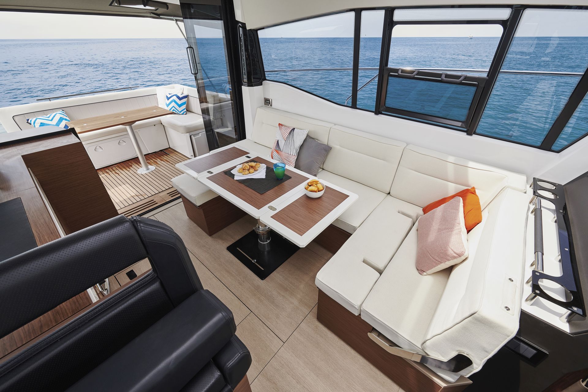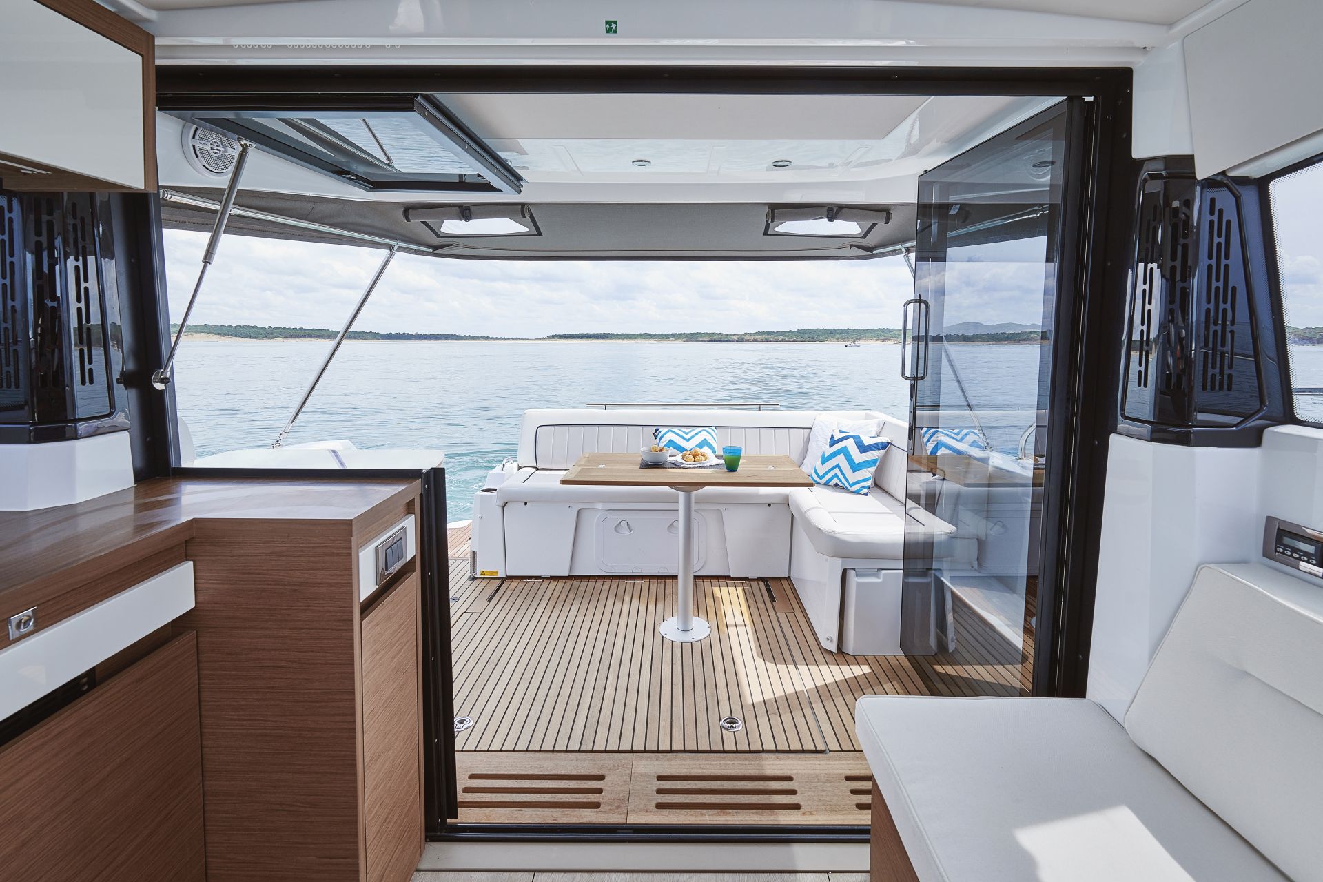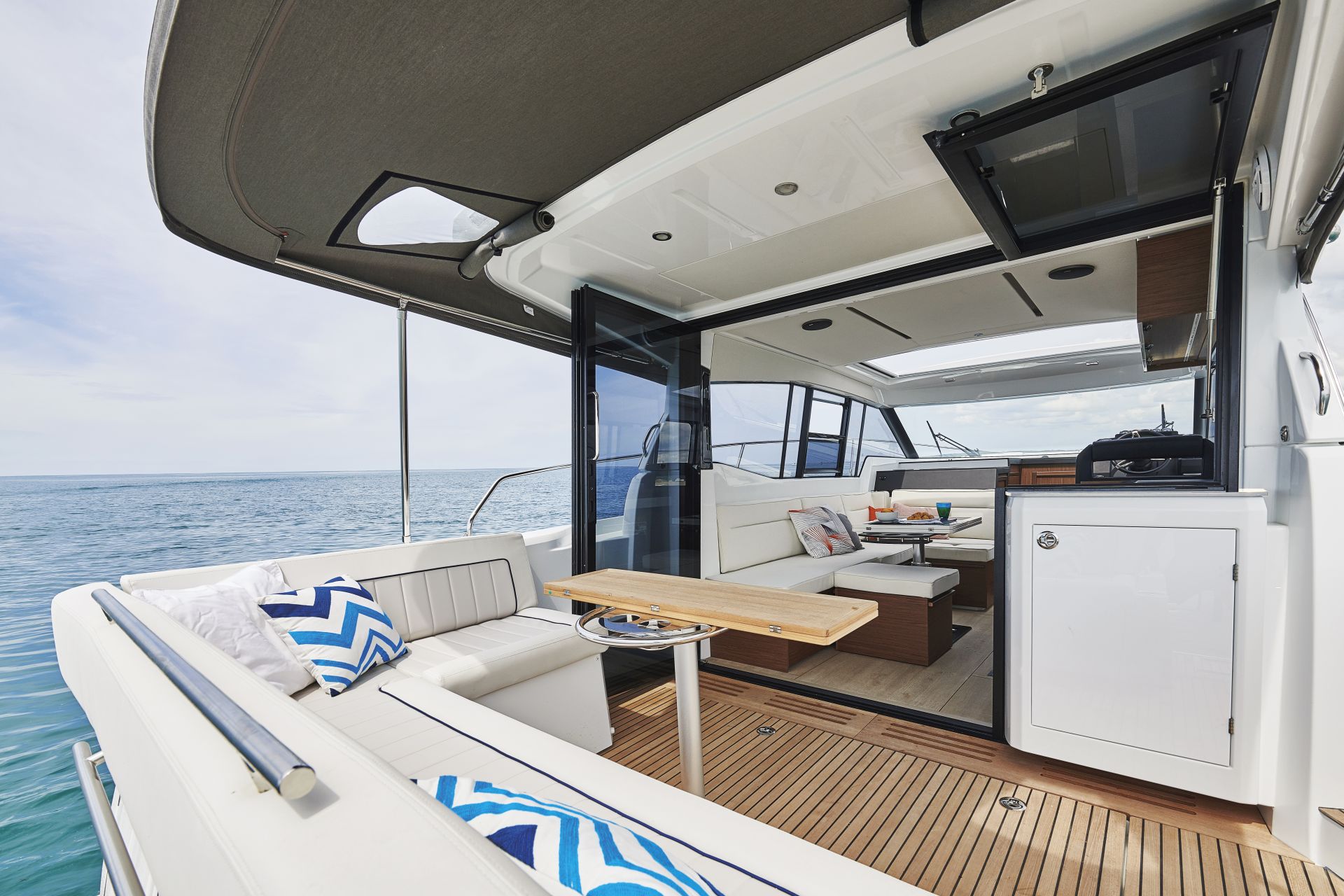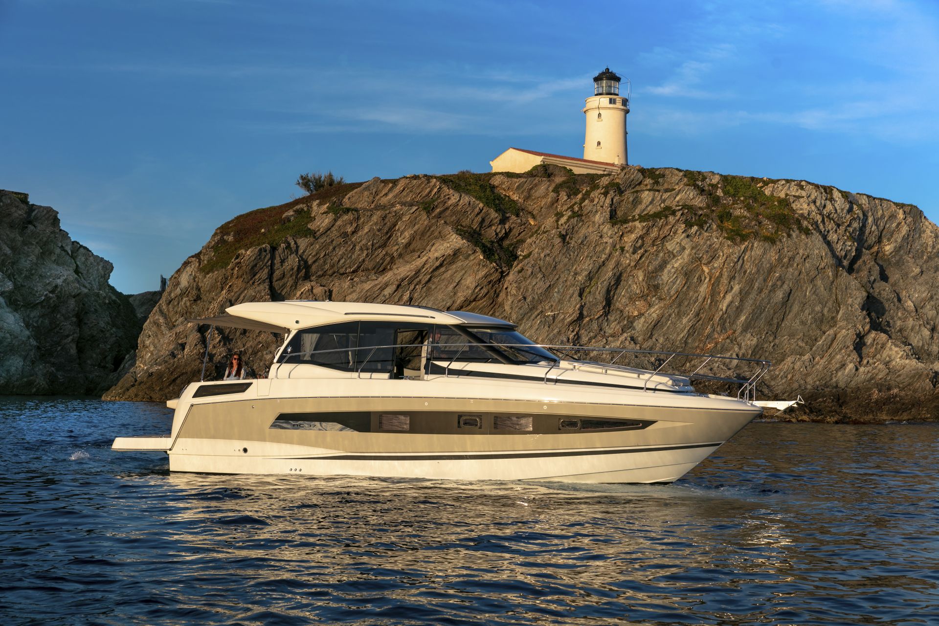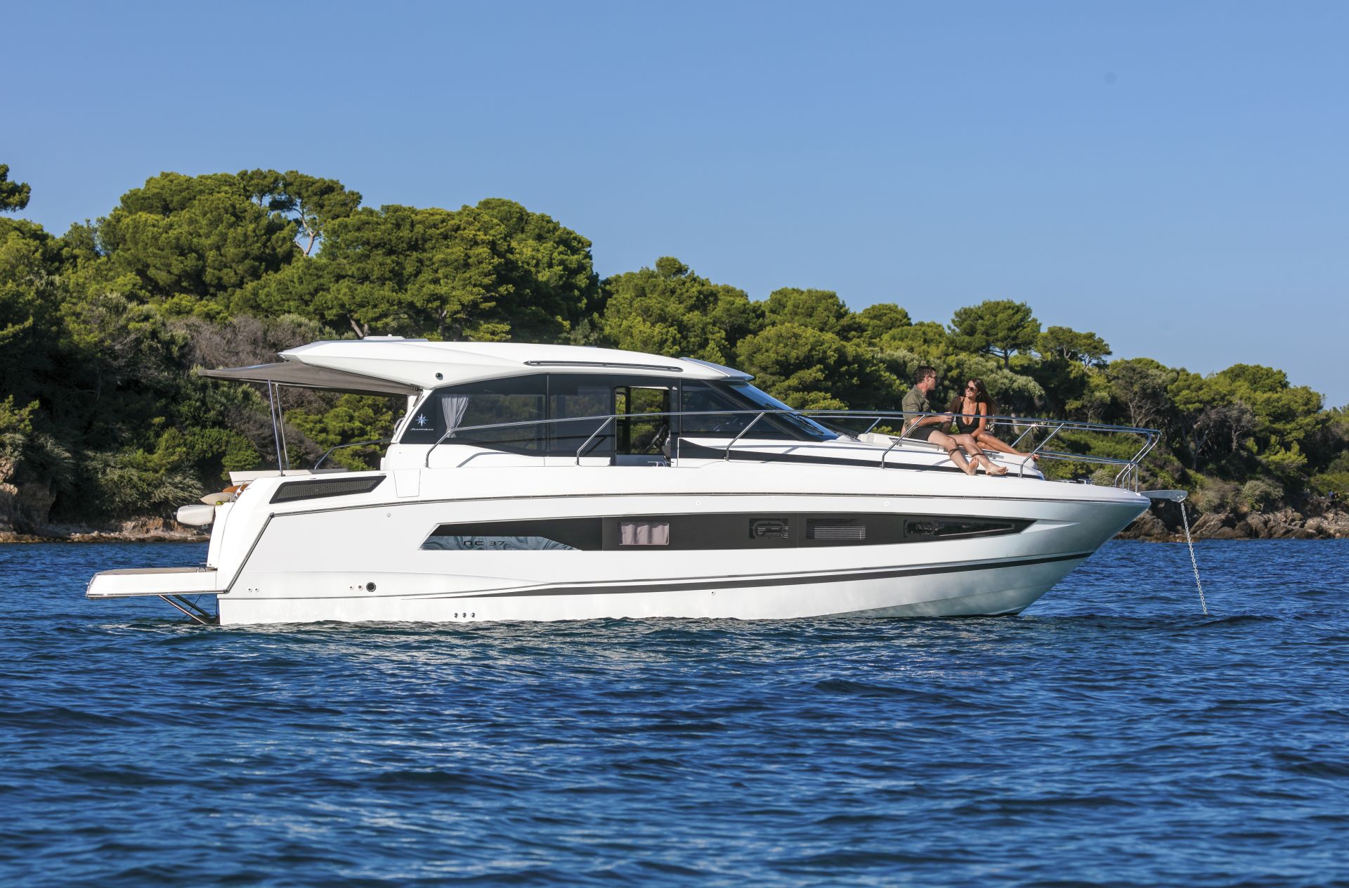 Dış kısımlarda azami ferahlık; içerideyse benzersiz rahatlık sunan NC 37, farklı kullanım senaryolarına uyum sağlamak üzere tasarlanıyor. Kıç taraftaki büyük yüzme platformuyla güneş altında rahatlamanın keyifni çıkarmanıza izin verirken, geniş havuzluğundaki geniş masada dostlarla hoş vakit geçireceğiniz ortam sağlıyor. Elektrikli açılabilir sunroof ise içeride bile güneşin tadını çıkarmanıza izin veriyor. Günlük yaşamı kolay ve çok keyifli kılan pek çok akıllıca düşünülmüş detaya sahip olması uzun süreli konaklamalar için ideal atmosfer oluşturuyor. Salonla kokpit arasındaki devasa kayar kapılar, iç ve dış alanları, dümen mahallinden kıç oturma grubunun sonuna kadar birleştiren kesintisiz ve büyük bir teras meydana getiriyor.
