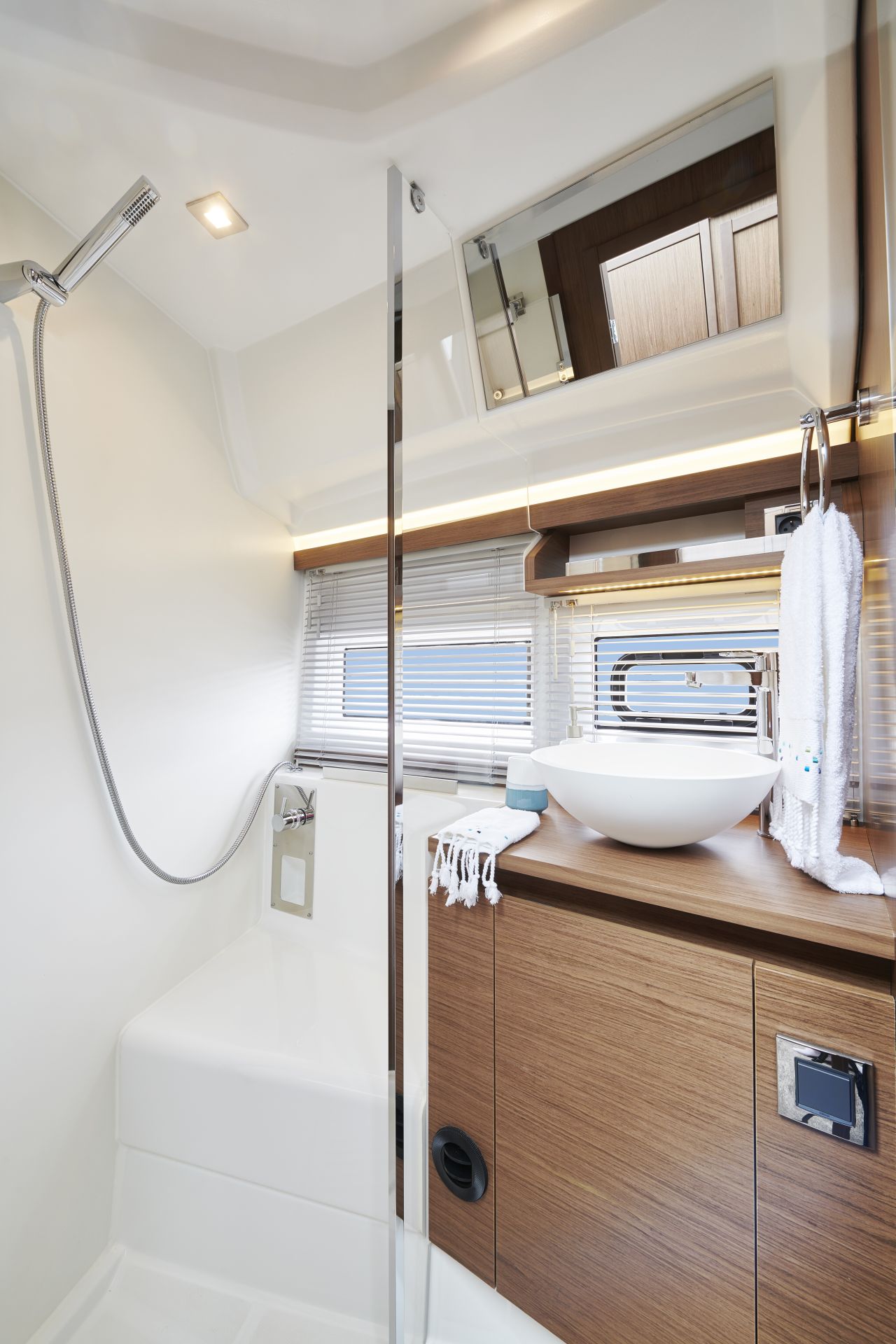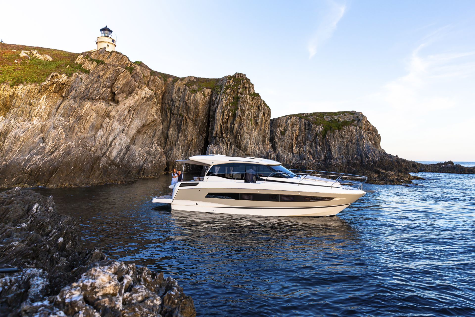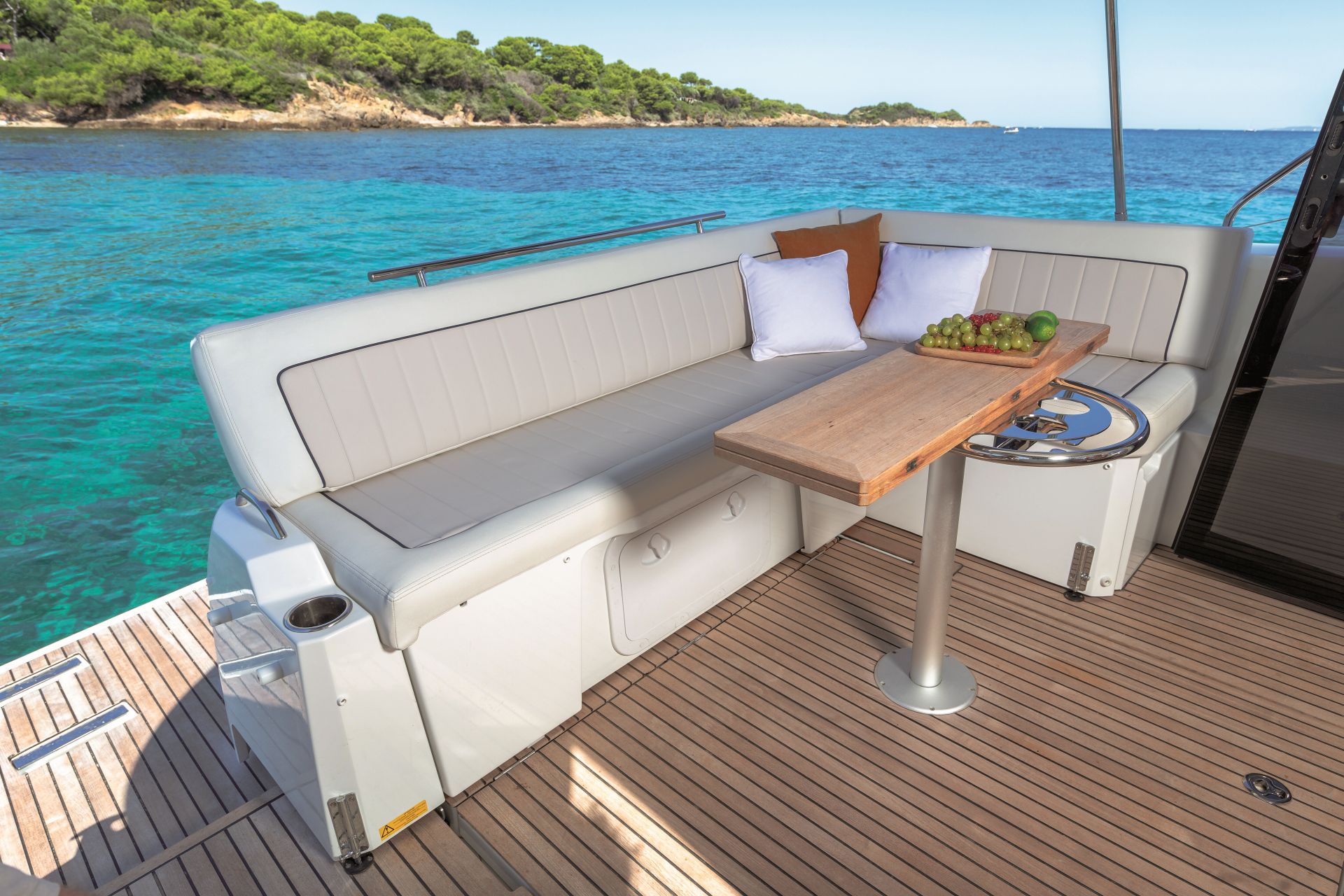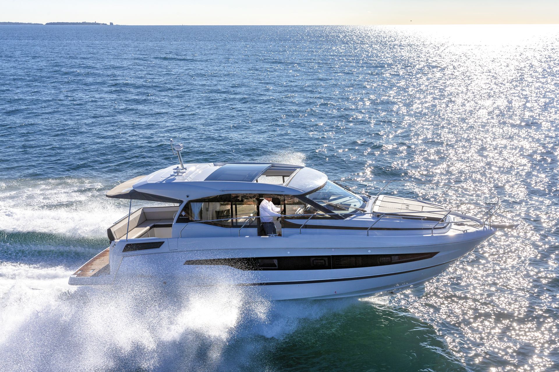 Dış kısımlarda azami ferahlık; içerideyse benzersiz rahatlık sunan NC 37, farklı kullanım senaryolarına uyum sağlamak üzere tasarlanıyor. Kıç taraftaki büyük yüzme platformuyla güneş altında rahatlamanın keyifni çıkarmanıza izin verirken, geniş havuzluğundaki geniş masada dostlarla hoş vakit geçireceğiniz ortam sağlıyor. Elektrikli açılabilir sunroof ise içeride bile güneşin tadını çıkarmanıza izin veriyor. Günlük yaşamı kolay ve çok keyifli kılan pek çok akıllıca düşünülmüş detaya sahip olması uzun süreli konaklamalar için ideal atmosfer oluşturuyor. Salonla kokpit arasındaki devasa kayar kapılar, iç ve dış alanları, dümen mahallinden kıç oturma grubunun sonuna kadar birleştiren kesintisiz ve büyük bir teras meydana getiriyor.