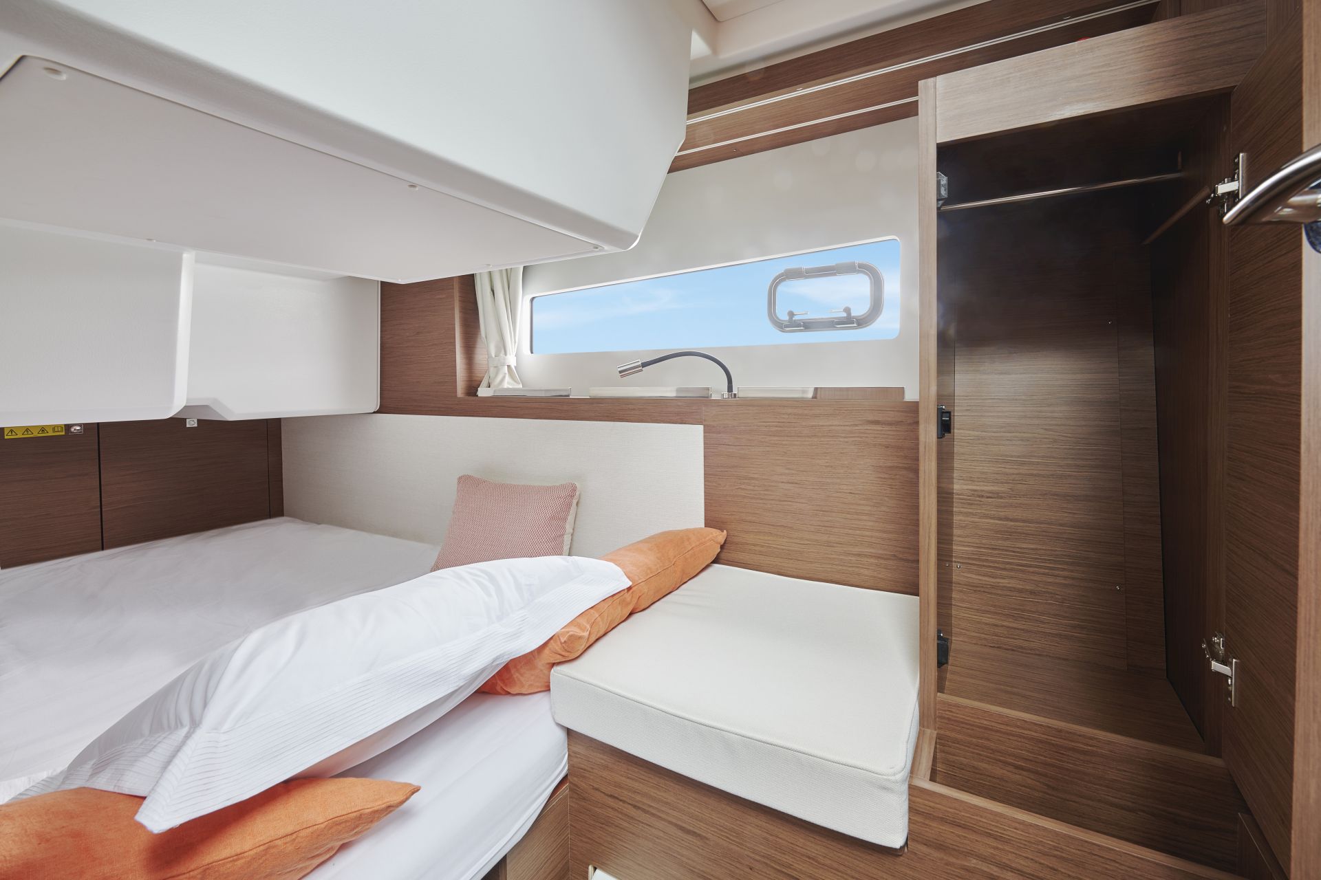 NC 37'nin çokça saklama alanına ve harika deniz manzarasına sahip geniş ve rahat iki kabinine ilave çift yataklı 3. kabin, 6 kişi için bağımsız yaşam alanı sunarken, salonun da 2 kişinin konaklayabileceği bir yatağa dönüşmesi, tekneyi 8 kişinin çok rahat bir şekilde yaşayabileceği bir model hâline getiriyor. Tam donanımlı açık mutfak ve bağımsız duş bölümüne sahip tuvaletse NC37'deyken konfordan ödün vermeksizin deniz keyfine odaklanmanıza yardımcı oluyor.